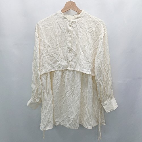 ◇ ⊂ Discoat ディスコート キレイめ系 長袖 スタンドカラーチュニックブラウス サイズF ベージュ系 レディース E