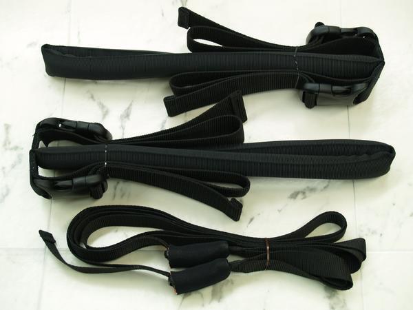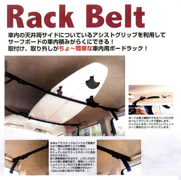 ![]() | 車の天井両サイドについているアシストグリップを利用し、サーフボード積み込み用ボードラック。 プラスチックのバックルで着脱は素早くちょー簡単、クッションが入っているのでケースやボードに負担がかかりません。 長さ調節付き(アシストグリップの間隔が92cm~128cmの車に取り付け可能)で、しっかりしたテンションをかける事ができます。 |