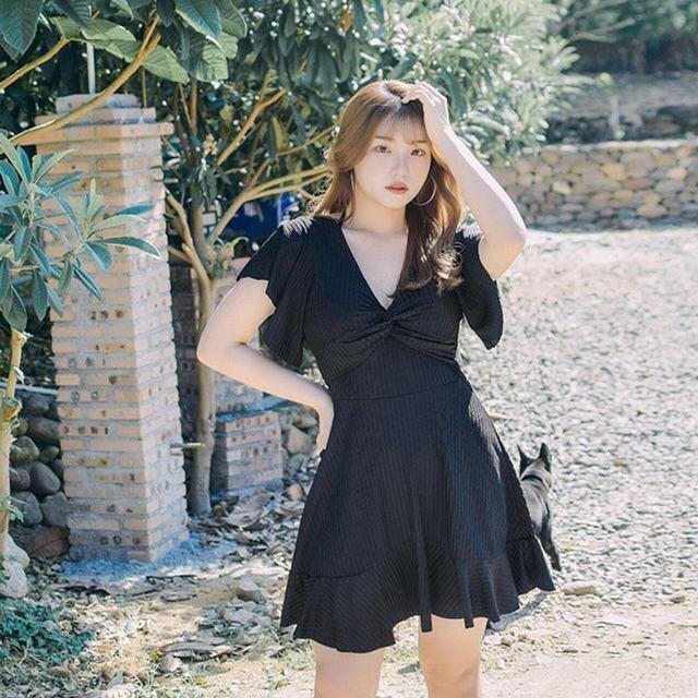 温泉 体型カバー レディース 水着 大きいサイズ ぽっちゃり ぽっちゃり ママ ワンピース水着 ブラック M