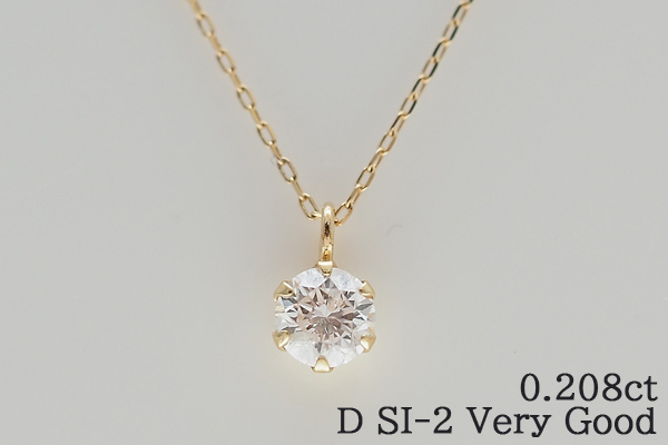 鑑定書付!Dカラー!K18YG 18金 ダイヤモンド0.208ct ネックレス D/SI-2/VeryGood 18金一粒ダイヤネックレス ダイヤペンダント