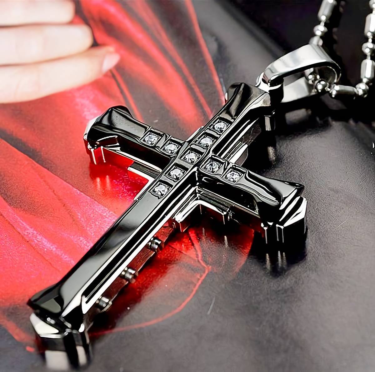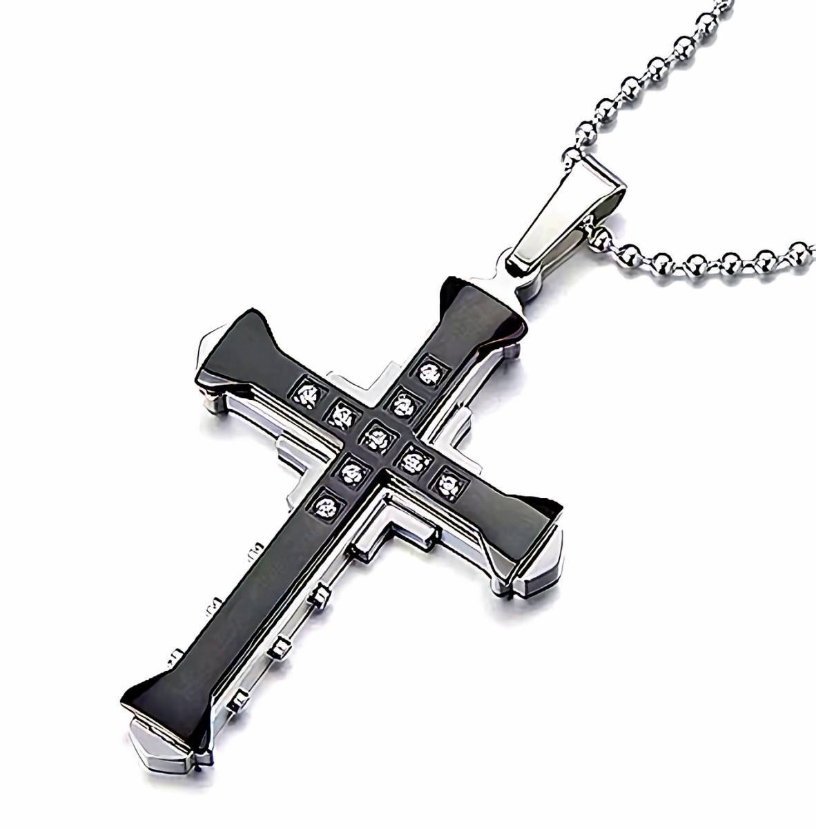 新品1円~★送料無料★七色ダイヤ信仰メタルブラック十字架メンズ925シルバーネックレス誕生日プレゼント旅行連休秋祭冬正月ギフト国内発送