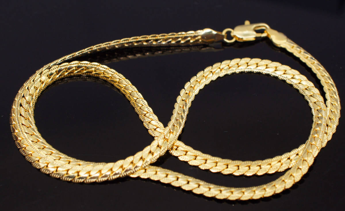 | ■18K GOLD PLATEネックレス gold plate(ゴールドプレート)の喜平ネックレスです☆ ゴールドの輝きと喜平チェーンのデザイン性を兼ね備えたお品です。 自分用にも、プレゼントにもおすすめです♪ 黒いベロアの巾着に入れてお届けします! 2個セットとなりますので、カップルでのご使用や、ご友人との共同購入にご利用下さい。 全長:50cm 幅:5mm 重さ:約25g 素材:18k gold plate(刻印入) ※お手入れについて※ 汗や水などが付きましたら柔らかい布でかるく拭いて下さい。 | |