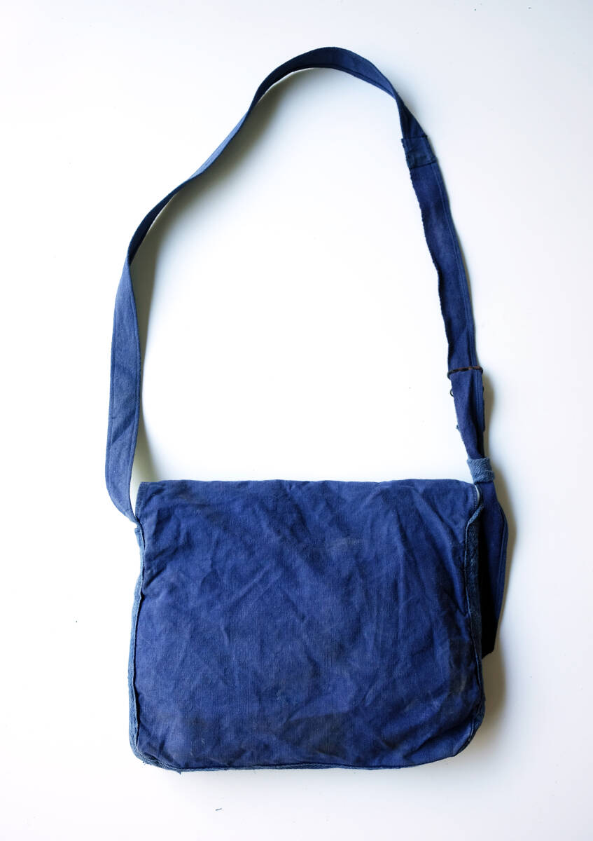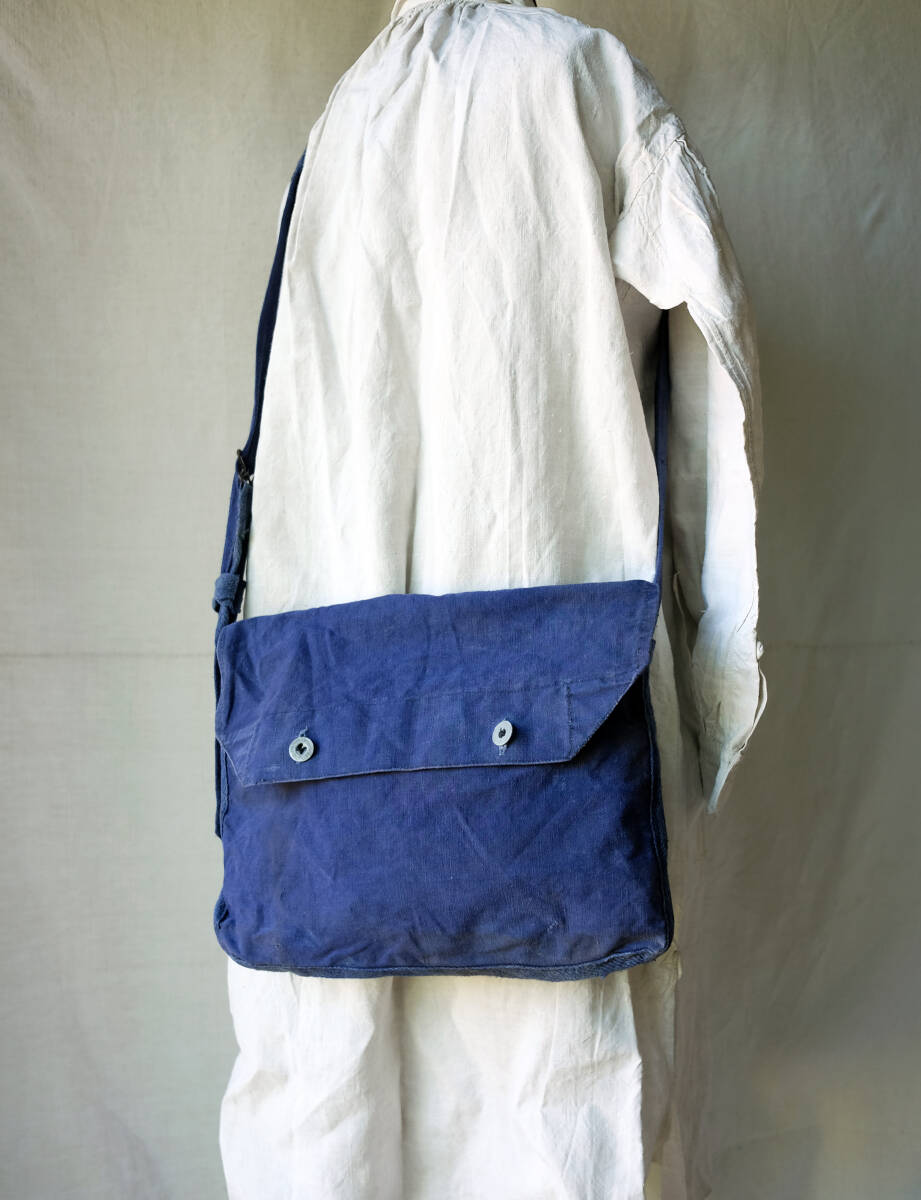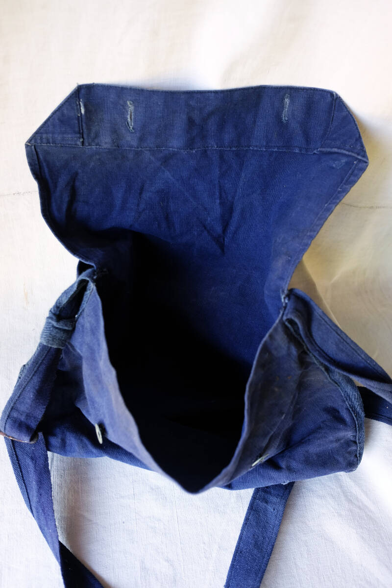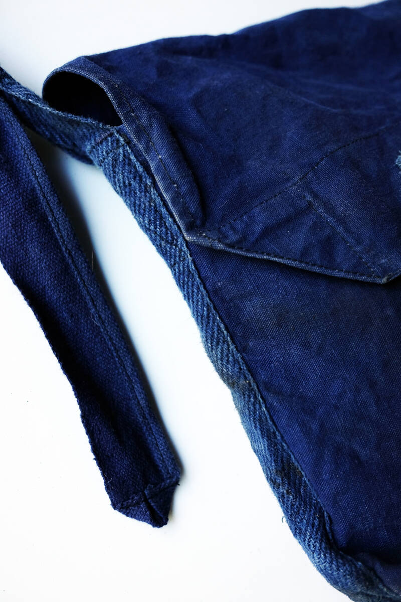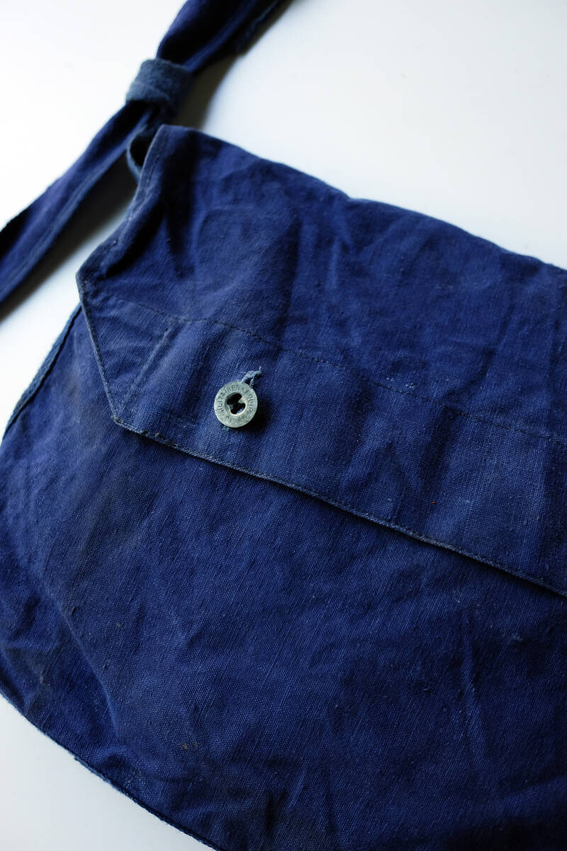 1930's フランス ヴィンテージ インディゴリネンミュゼット ブレッドバッグ 30s ショルダーバッグ ワークジャケット スモック