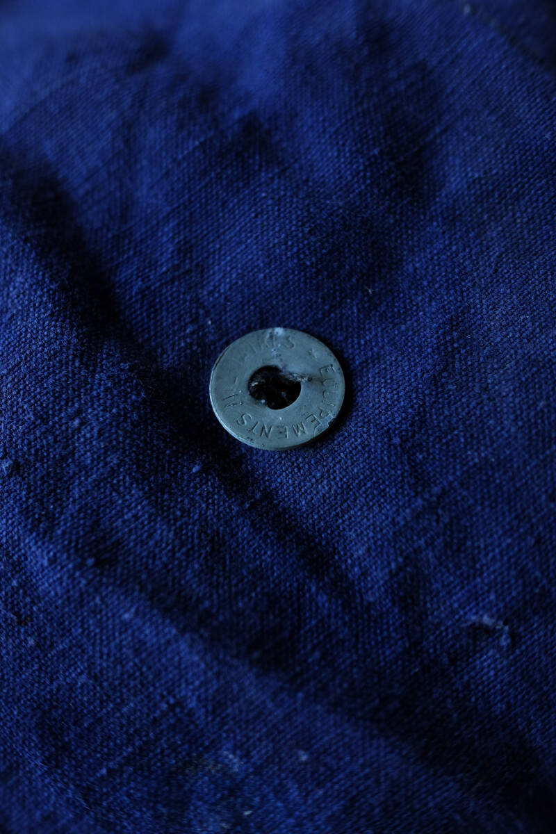 深いインディゴの平織りリネン、僅かにコットンが入るでしょうかこなれた味のある良い風合い、