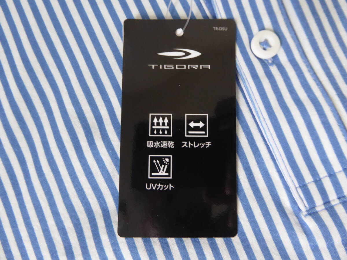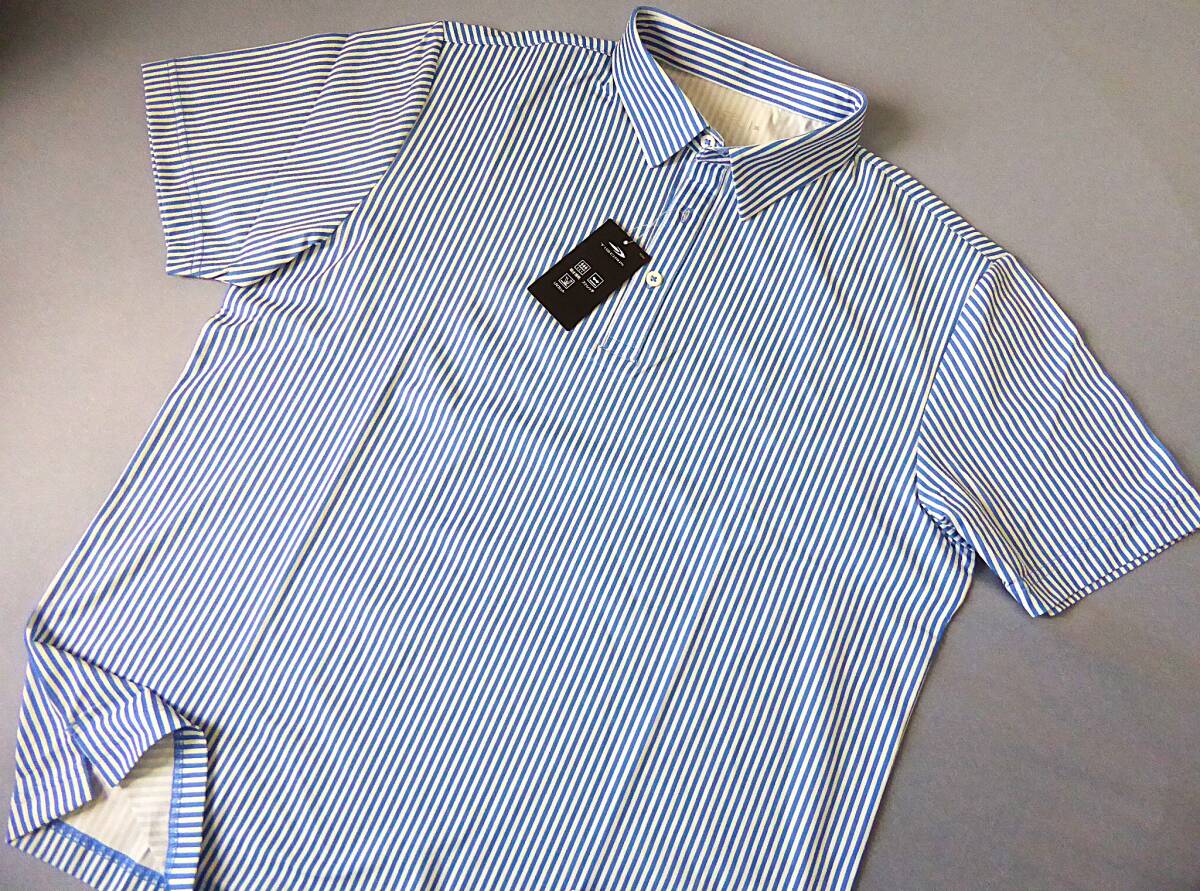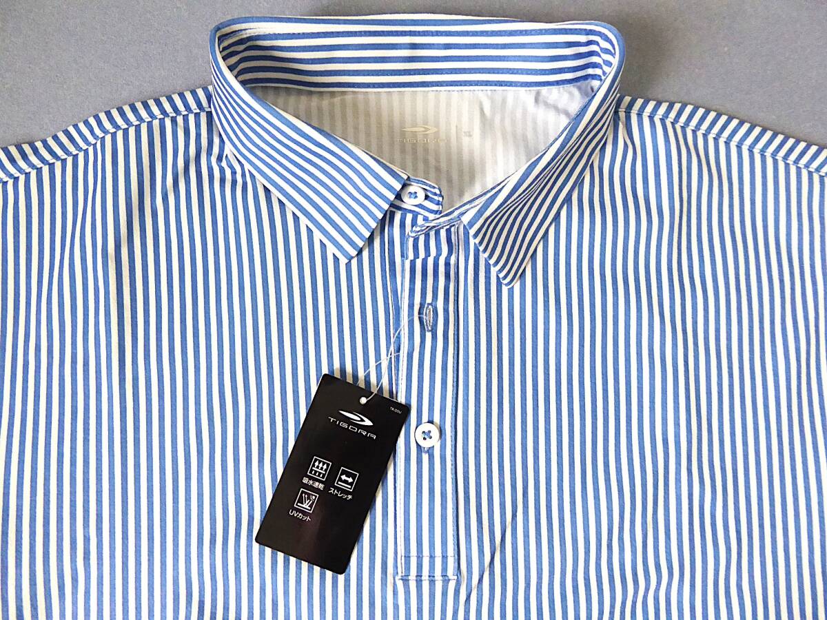 TIGORA GOLF ティゴラ ゴルフ 吸水速乾 UVカット ストレッチ ストライプ柄 半袖ポロシャツ XL 青白