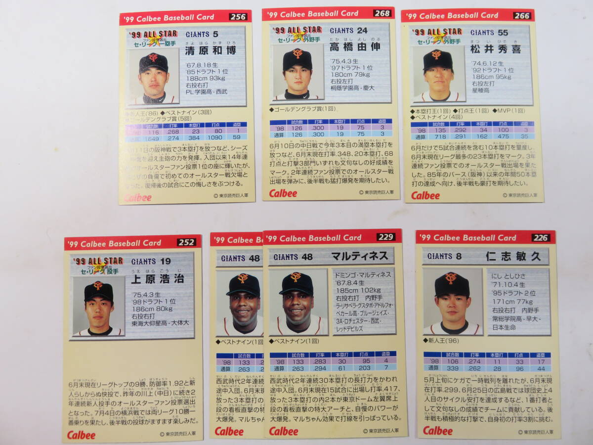 ■Calbee 「カルビー ’99 ベースボールカード」読売巨人軍 松井・高橋・清原・仁志・マルティネス・上原 7枚セット