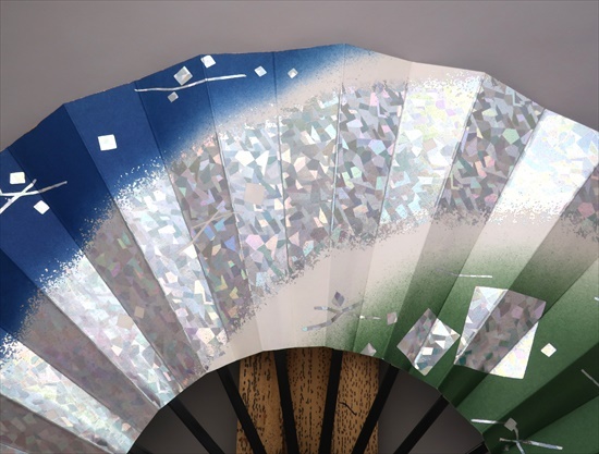 舞扇子 A2153 ホロ箔ナナメ太線小石 青・草両妻ぼかし 【箱なし】