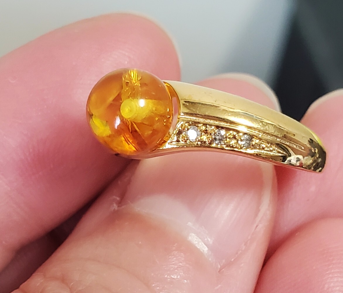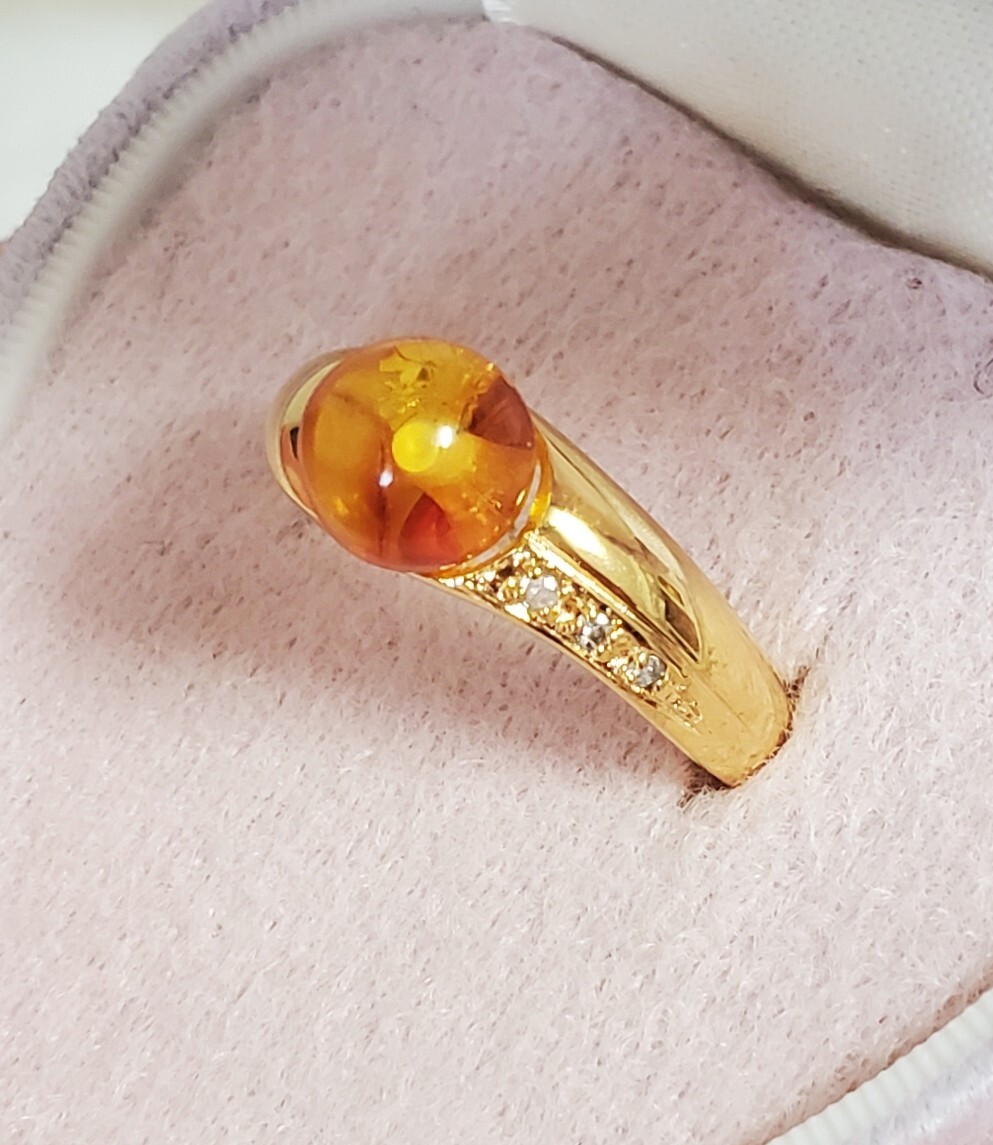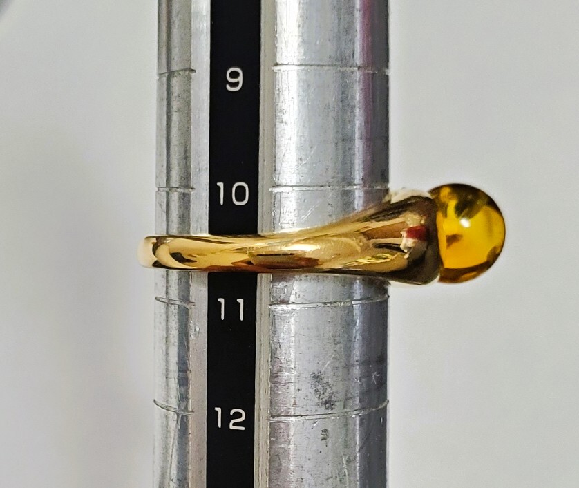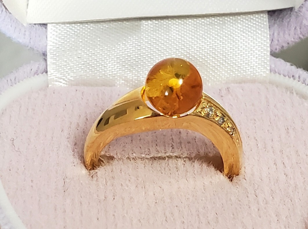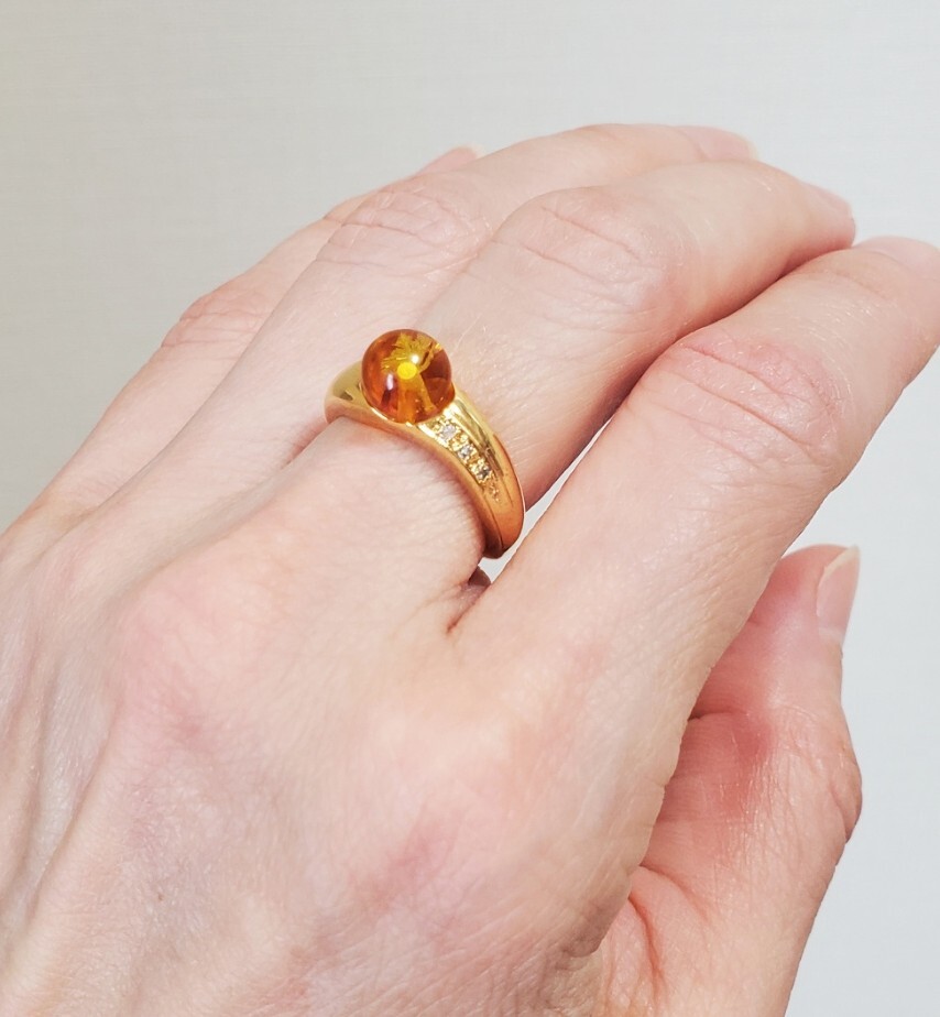 天然ダイヤモンド 0,03ct SILVER シルバー刻印 琥珀 指輪 レディース アクセサリー 10,5号 3,6g 美品