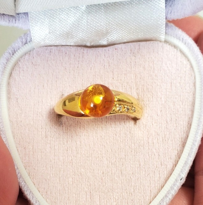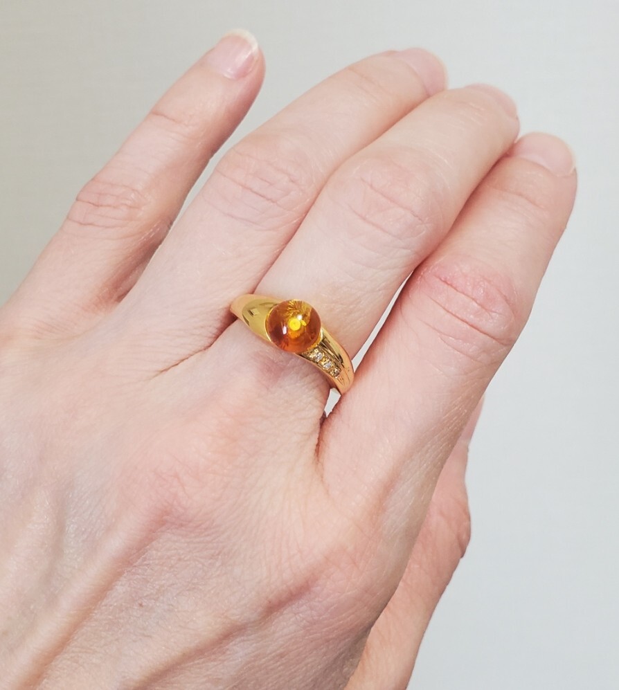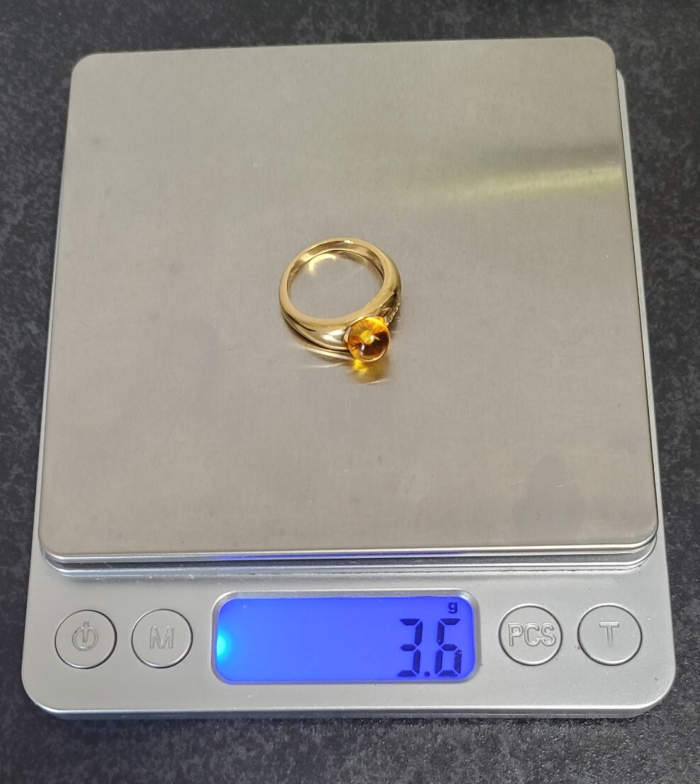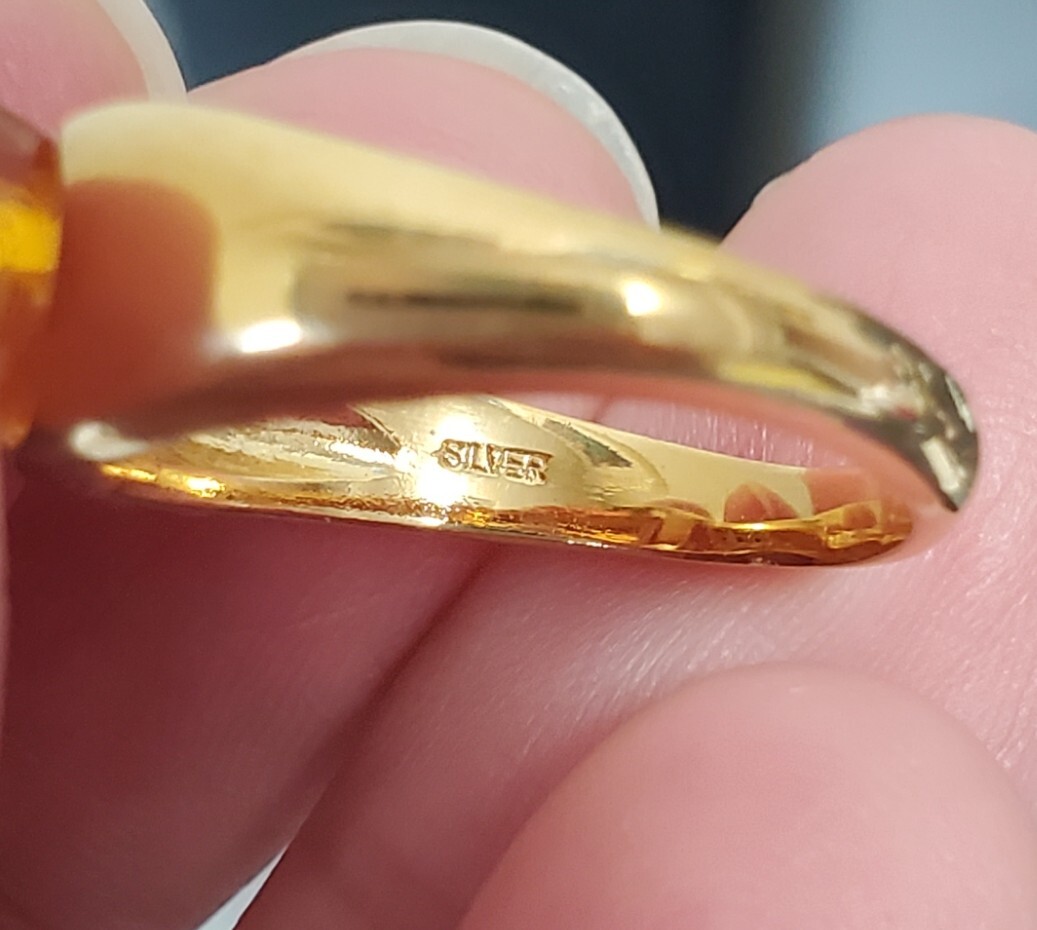 天然ダイヤモンド 0,03ct SILVER シルバー刻印 琥珀 指輪 レディース アクセサリー 10,5号 3,6g 美品