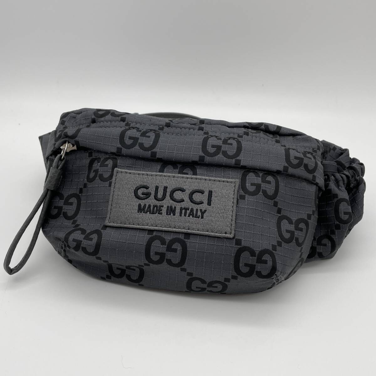 新しいGGパターンのリサイクルポリエステル製ベルトバッグ。ダークグレー&ブラックに仕上げたベルトバッグには“GUCCI MADE IN ITALY”パッチ。実用性と現代的なセンスを兼ね備えたアイテムです。