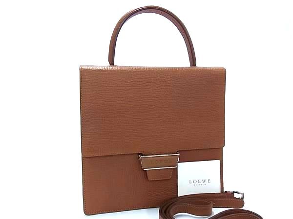 1円 ■美品■ LOEWE ロエベ レザー 2WAY クロスボディ ハンドバッグ ショルダーバッグ 斜め掛け 肩掛け レディース ブラウン系 FR0861