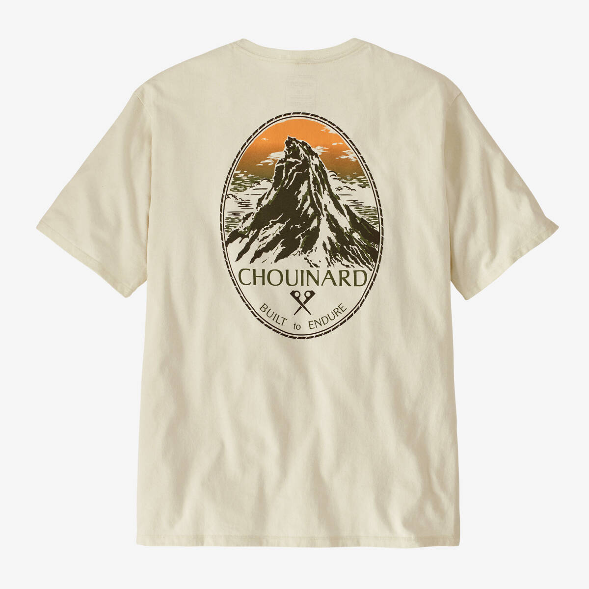 パタゴニア初期のクラシックなグラフィックをグラデーションのカラーで仕上げたシュイナード・クレスト・ポケット・レスポンシビリティー。このTシャツは 端切れと回収されたペットボトルをリサイクルした素材を使用し、バージン原料への依存を削減。フェアトレード・サーティファイドの工場で製造