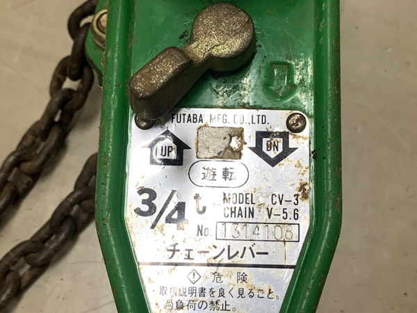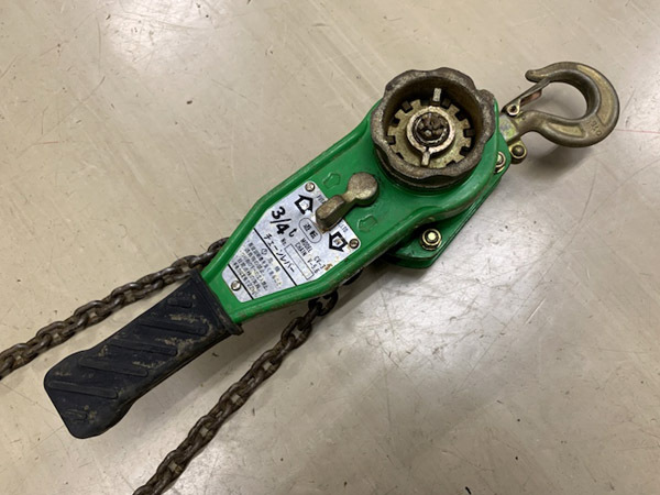 中古品のため、全体にキズや汚れ、サビがございます。 状態は画像をよくご確認のうえ ご判断ください。 【仕様】 ・定格荷重:3/7ton(約0.8t) ・揚程 :約1.5m ・ハンドル:約275mm ・本体質量:約6.3kg ※上記情報はあくまでも参考値となります。 ※中古品のため 100%の性能の保証はできかねます。 ※その他詳細な仕様はメーカーHPをご確認下さい。 手動にて簡易確認のみ行っております。 ハンドルを操作し、巻き上げ・巻き下げ・フリー動作など 一通り確認済みです。 仕様通りの強さまでの確認は行っていないため、100%の性能は保証できかねます。 中古品になりますので キズ・汚れ等がございます。 画像の物が全てになります。 他に付属品等はございません。 上記のことを ご理解・ご了承の上で ご入札を お願い致します。 その他 ご不明な点等ございましたら ご入札前に お気軽に ご質問下さい。 オークション終了日 当日は 午後5時迄に ご質問は お願い致します。 夕方以降に ご質問等 お問い合わせ頂きましても お応えするのが 翌営業時間中になりますので ご了承ください。 *詳細につきまして ご質問されましても お答えできない場合もございます。 | ||||