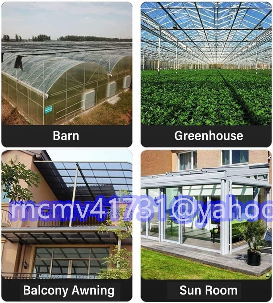 幅広い用途: ポリカーボネートクリアシートは温室だけでなく、ドアや窓の日よけ、カーポート、サンルーム、その他の断熱プロジェクトに最適な建材です。