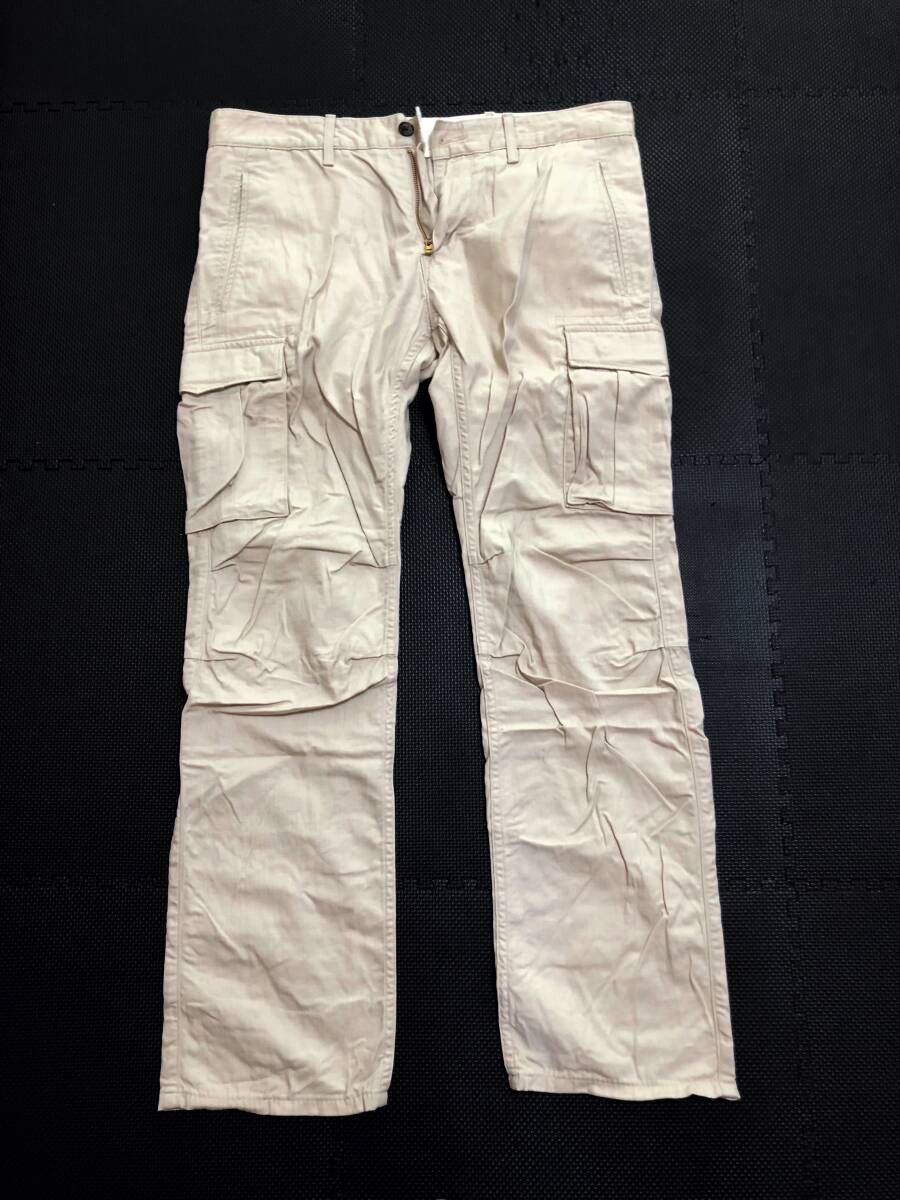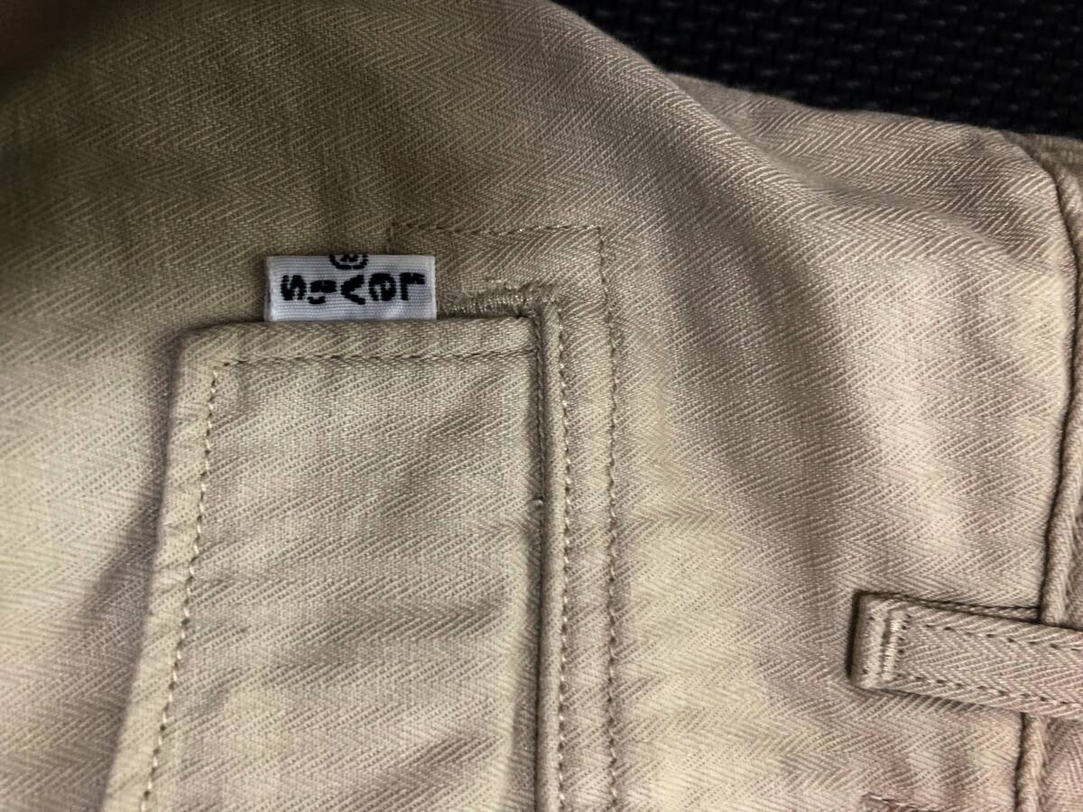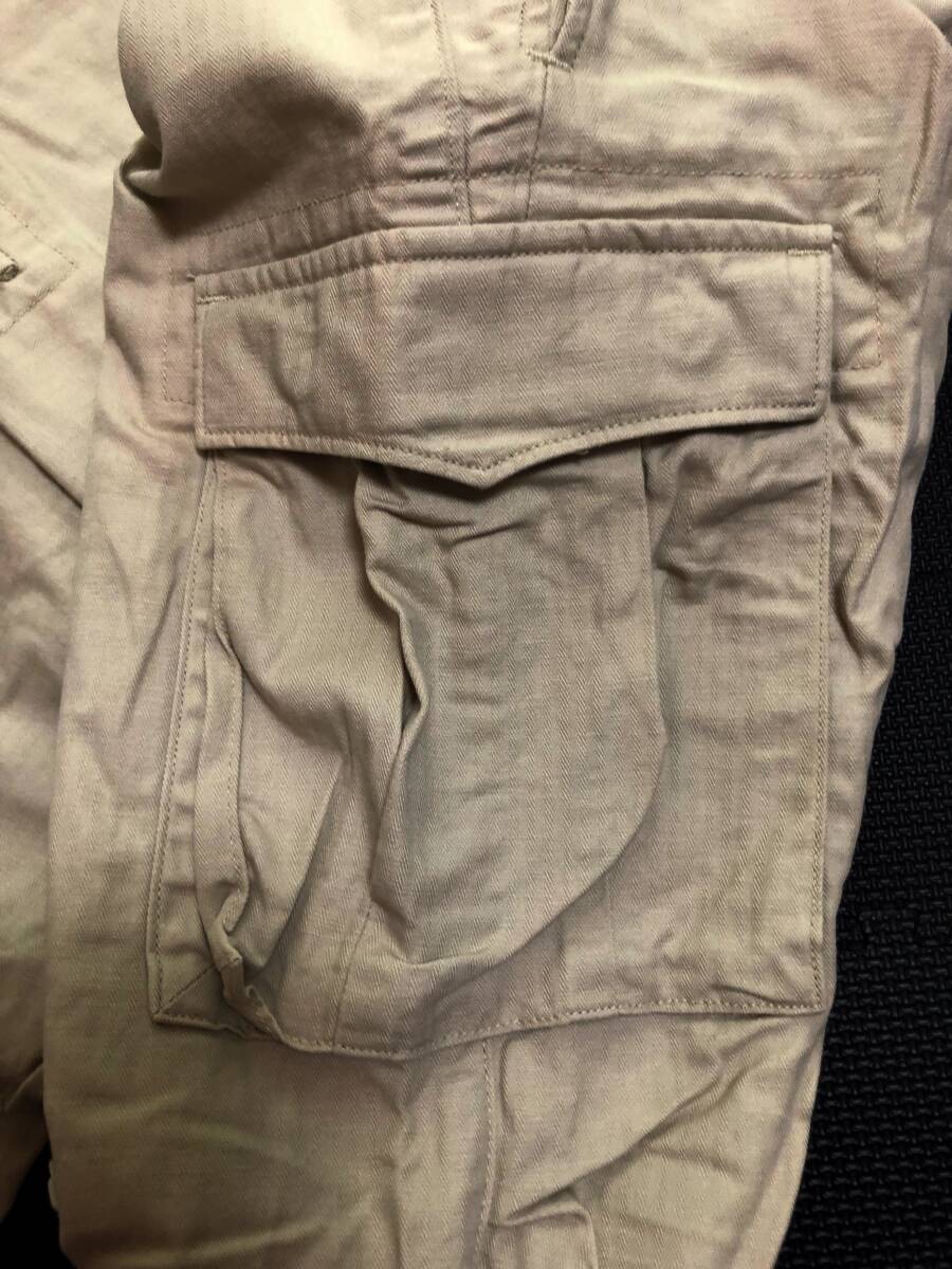平置き実寸寸法;ウエスト約46cm 股上(フロント)約27cm 股下約82cm もも幅約33cm すそ幅約21.5cm 全丈約106cm