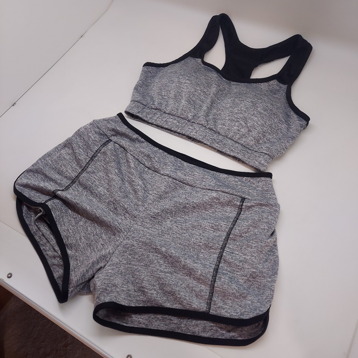美品 セパレート 水着 Lサイズ スポーツにも グレー ブラック ビキニ パット付き スポーツブラ ショートパンツ スイムウェア