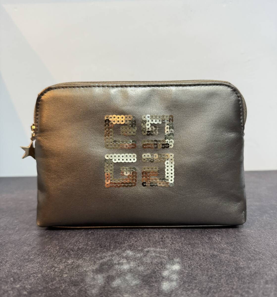 【未使用品】GIVENCHY ジバンシイ タオルハンカチ&ポーチセット スパンコール シャンパンゴールド リボン柄 ハンカチ まとめ売り 送料無料