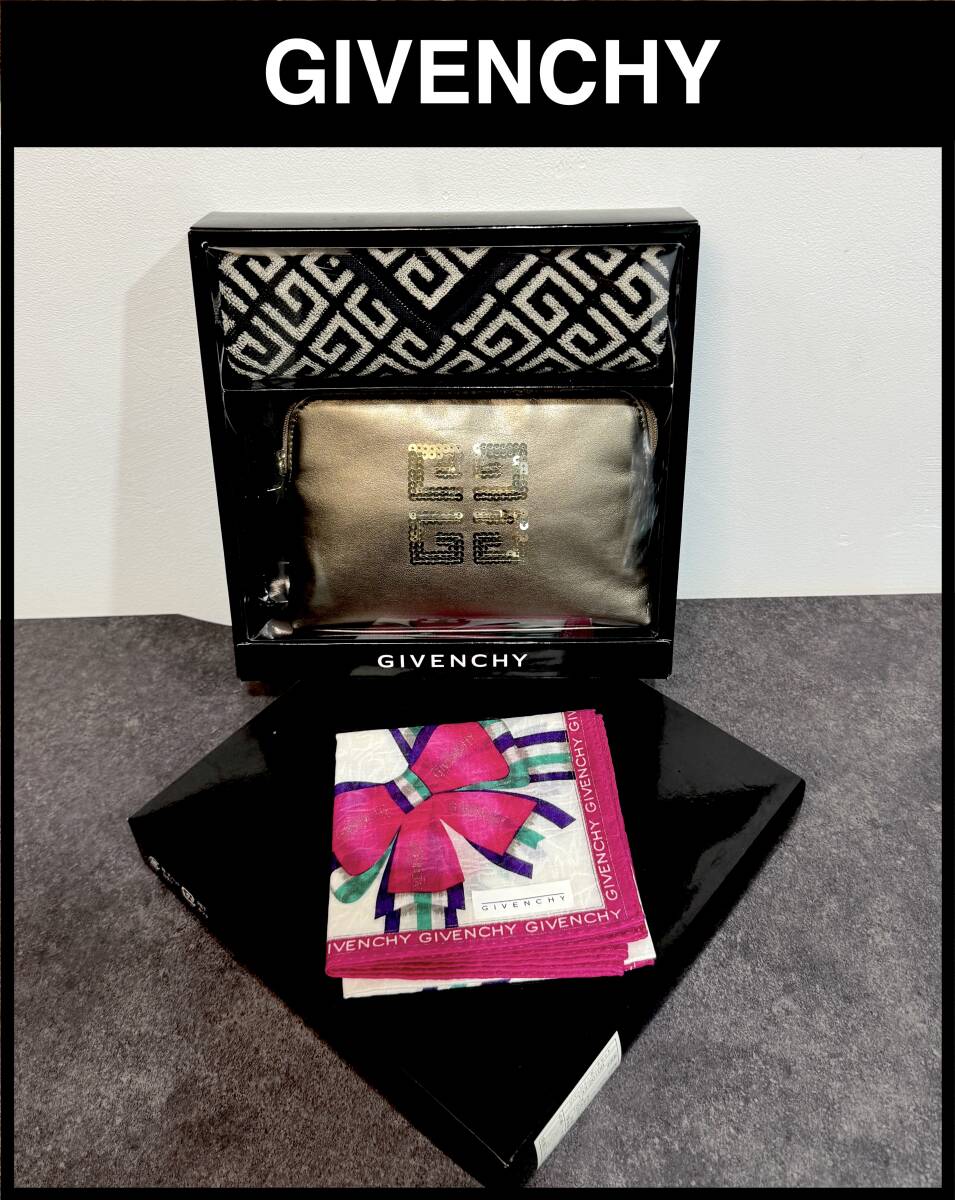 「GIVENCHY ジバンシイ タオルハンカチ&ポーチセット+ジバンシイ リボン柄ハンカチ1枚」の未使用品です。