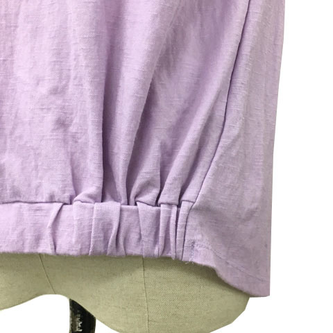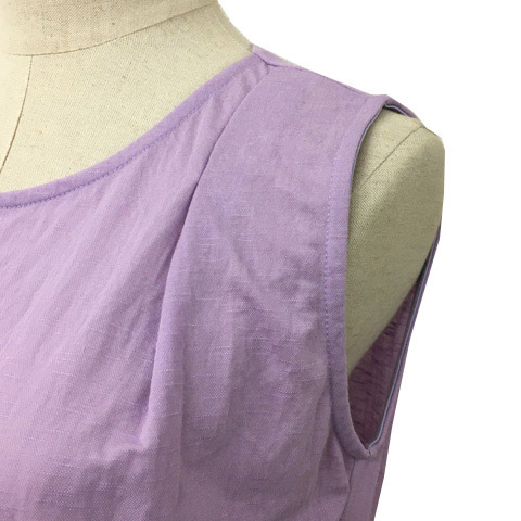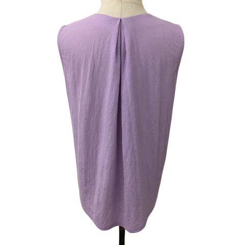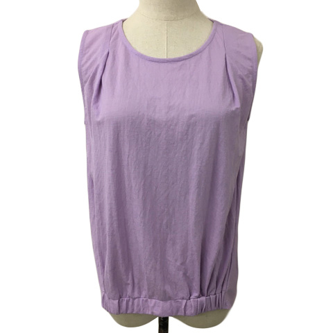 ナチュラルビューティーベーシック カットソー タンクトップ プルオーバー ラウンドネック 無地 タック ノースリーブ M 紫 パープル