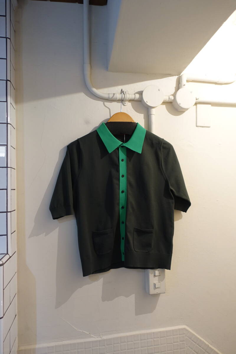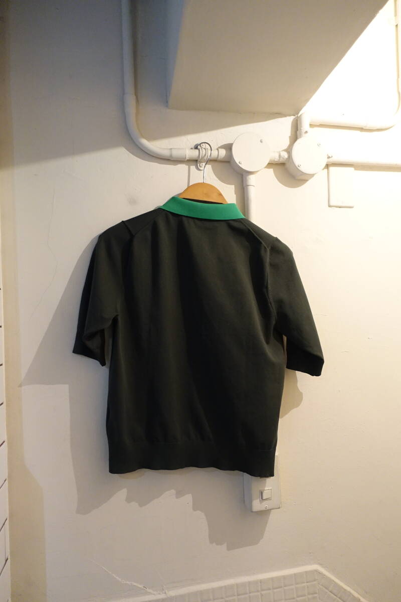 ◎CABaN ニット 薄手 ポロシャツ 22SS 定価27500円 グリーン&ダークグリーン・オリーブ系 サイズF 5分袖