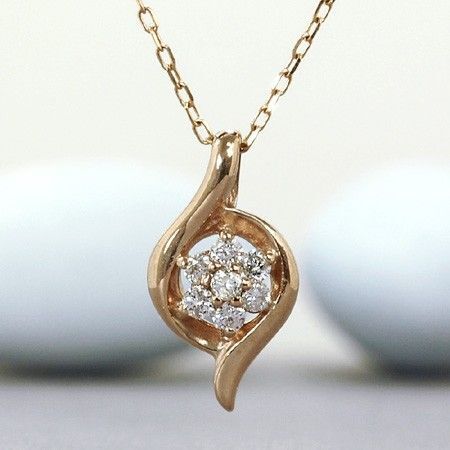 女性的な可愛さで人気のピンクゴールドに、ダイヤモンドをちりばめたネックレスです。