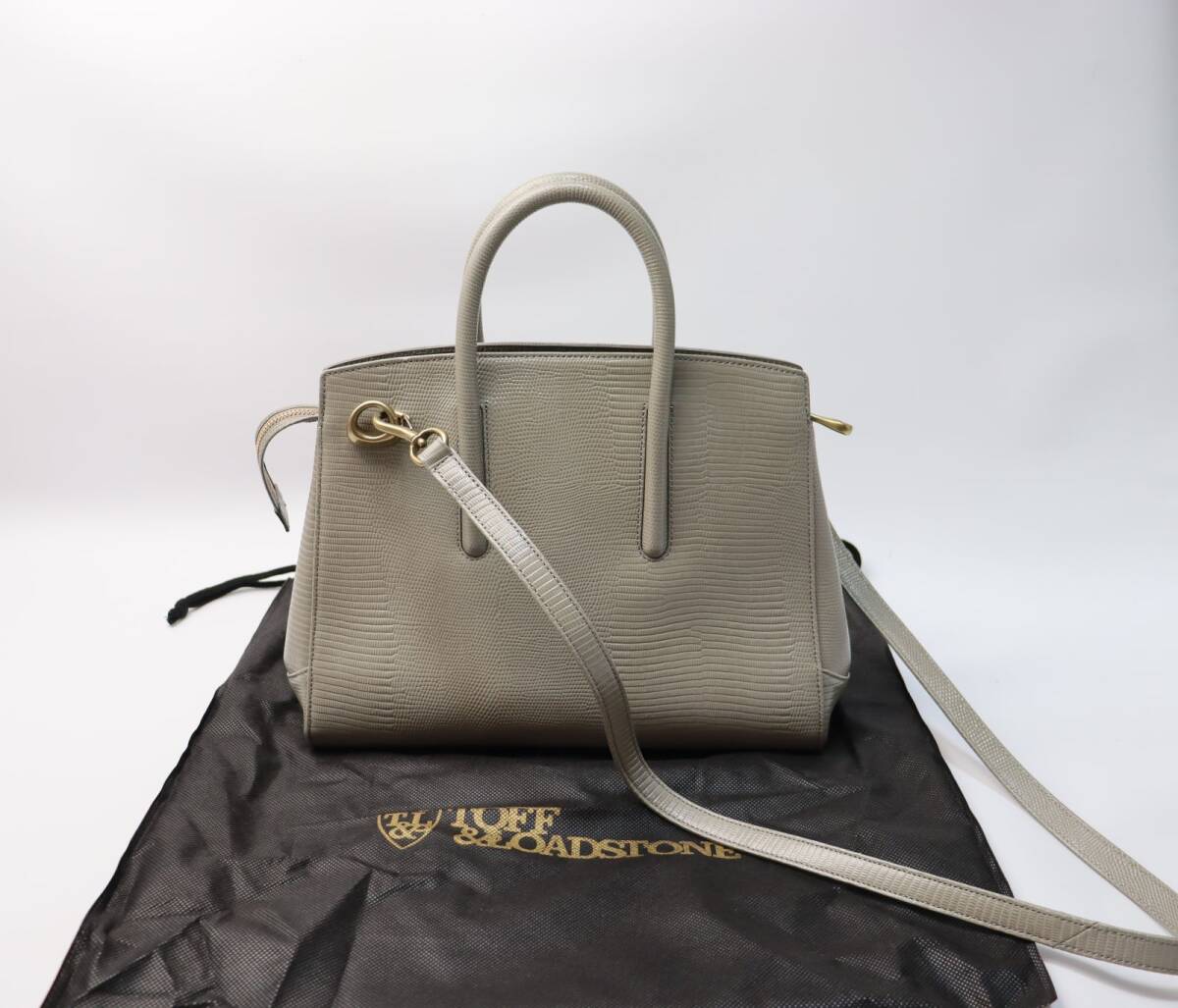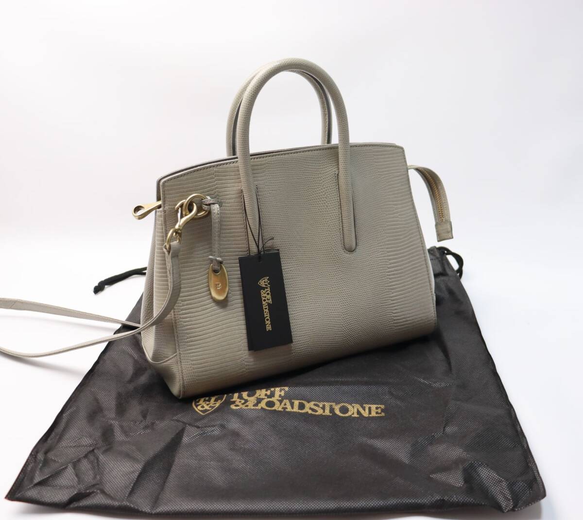 TOFF&LOADSTONE (トフアンドロードストーン) トートバッグ Jolie Lizard (M) ジョリーリザード M リザード型押しのレザーが上品で、お出かけや普段使いはもちろん、フォーマルシーンにもおすすめです。 ご質問はお気軽にどうぞ。 ◆カラー:グレージュ ◆素材:リザード型押し牛革 ◆サイズ(約):H23×W30×D13cm/ショルダー対応サイズ:107cm ◆仕様: ・開け口はファスナー付き ・内オープンポケット2個 ・内ファスナーポケット1個 ・ショルダーストラップ付き(付け外し可能) ・底鋲有り ◆日本製 ◆定価49,500円(本体45,000円+消費税) ※目立つ物は記載しておりますが、天然の皮革製品に付き、自然な色ムラ、小キズ等がある場合があります。 |