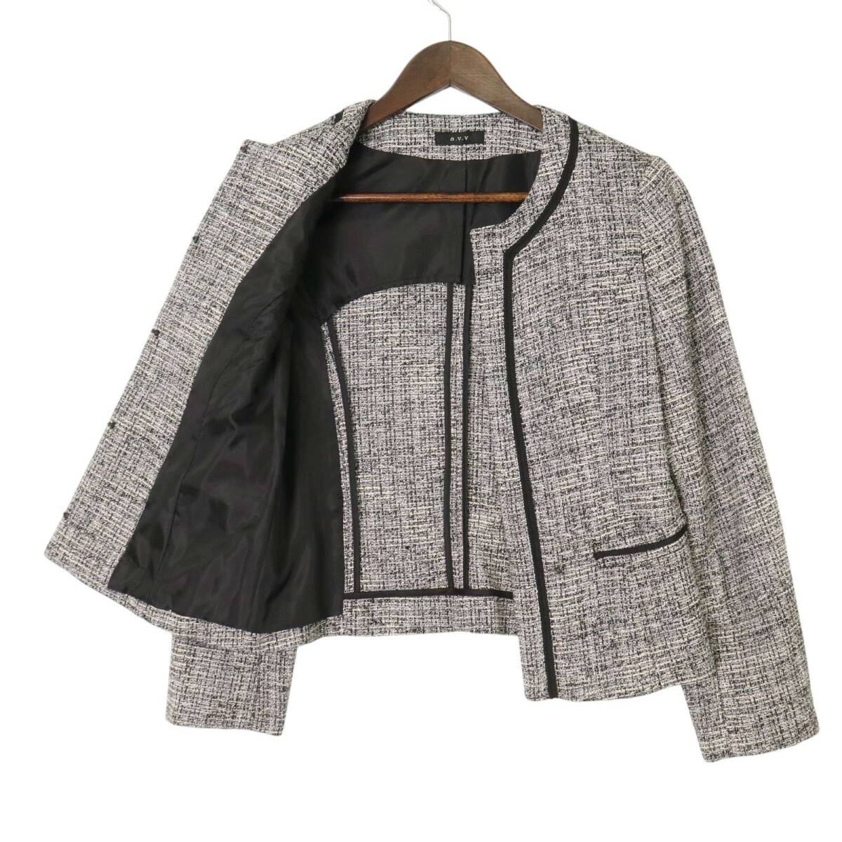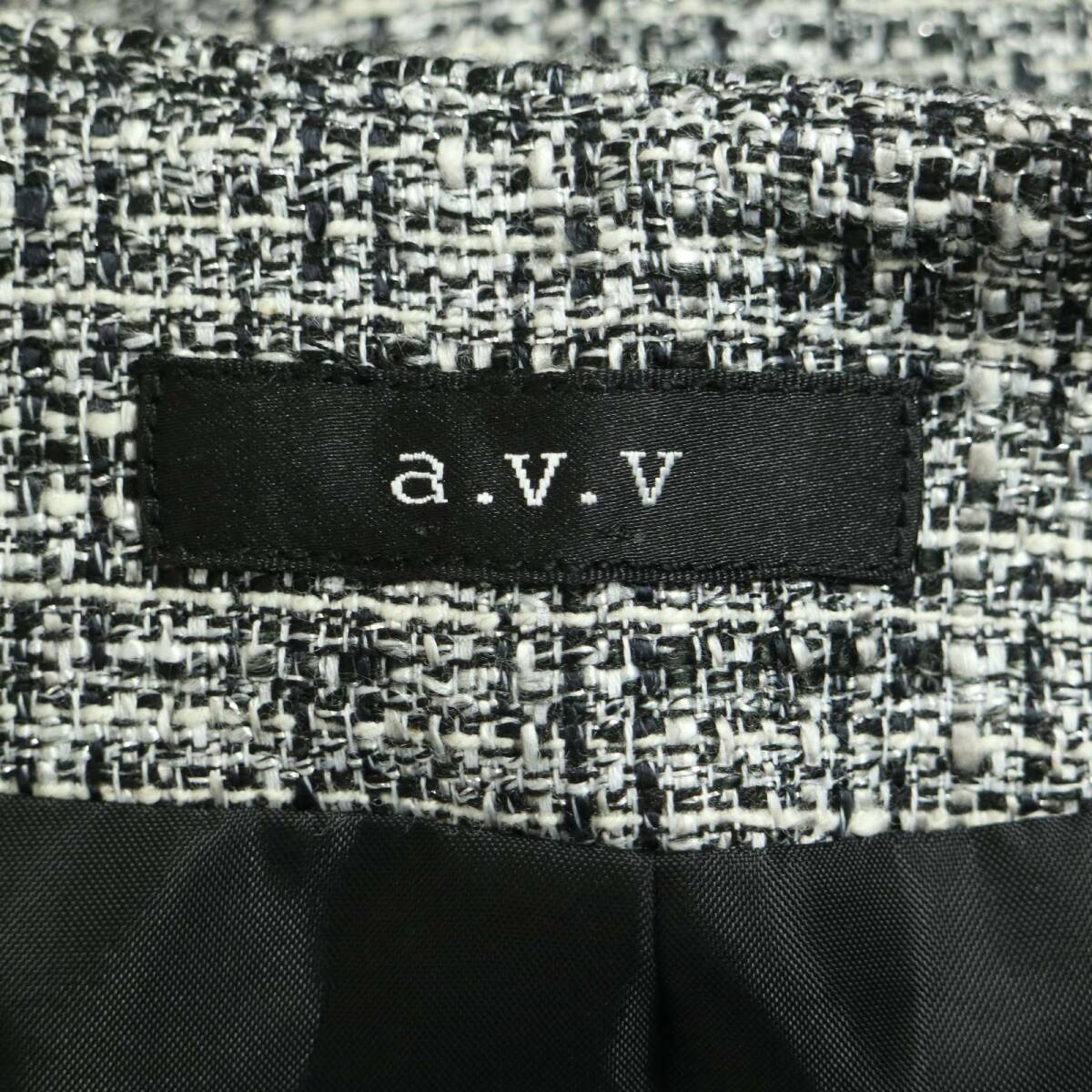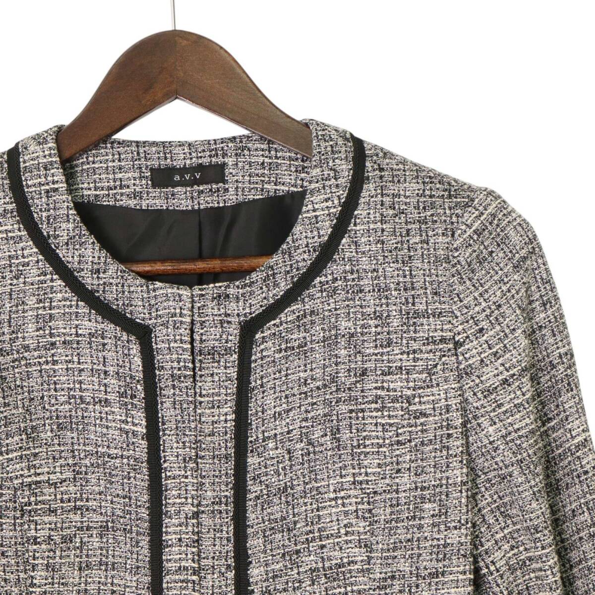 a.v.v アーヴェヴェ 通年 ストレッチ★ ツイード柄 ノーカラー ジャケット フォーマル セレモニー Sz.S レディース
