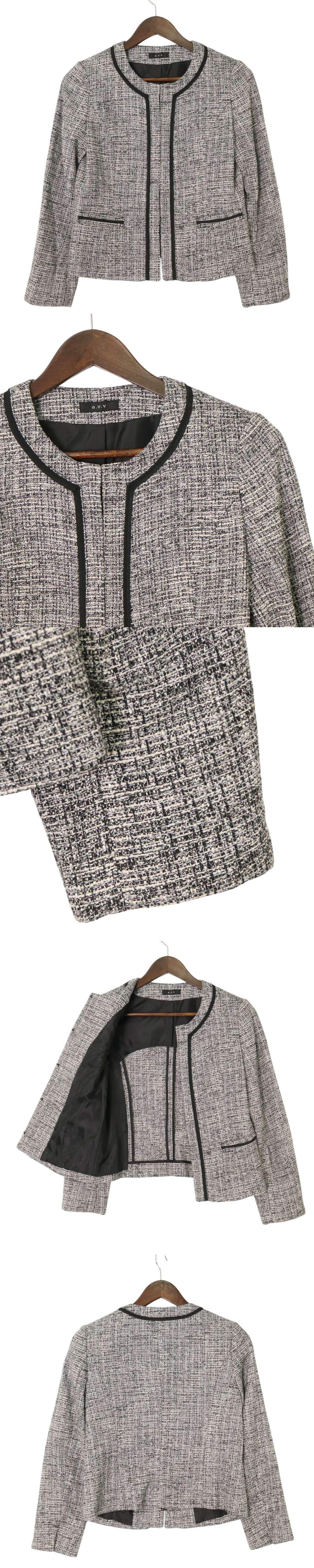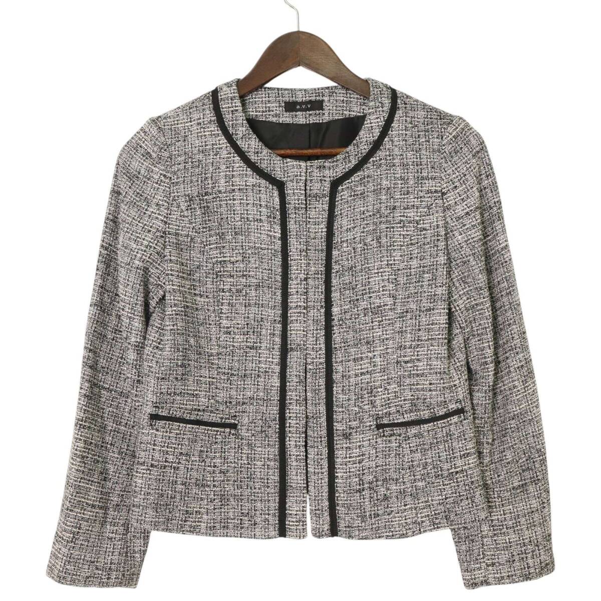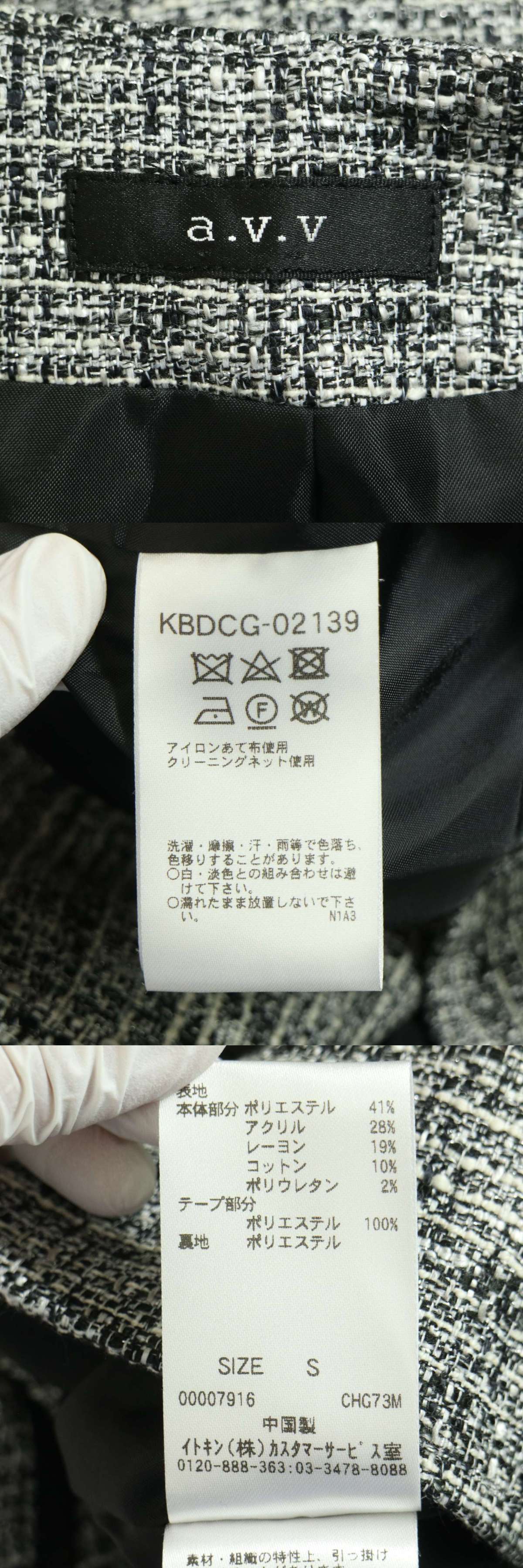 a.v.v アーヴェヴェ 通年 ストレッチ★ ツイード柄 ノーカラー ジャケット フォーマル セレモニー Sz.S レディース