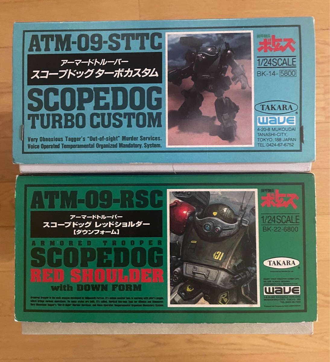 WAVE タカラ 装甲騎兵ボトムズ 未組立 1/24プラモデル スコープドッグダウンフォーム&ターボカスタムです。