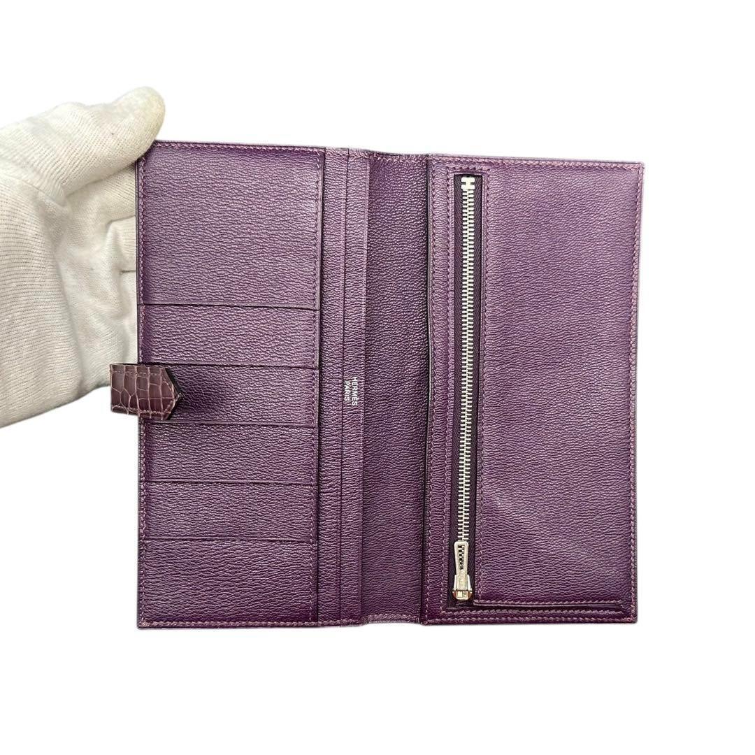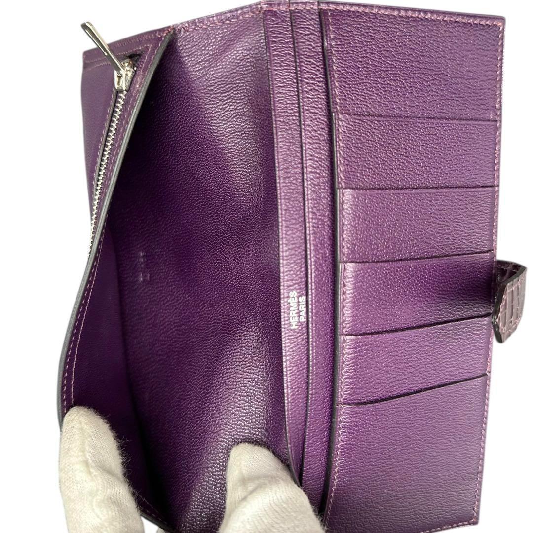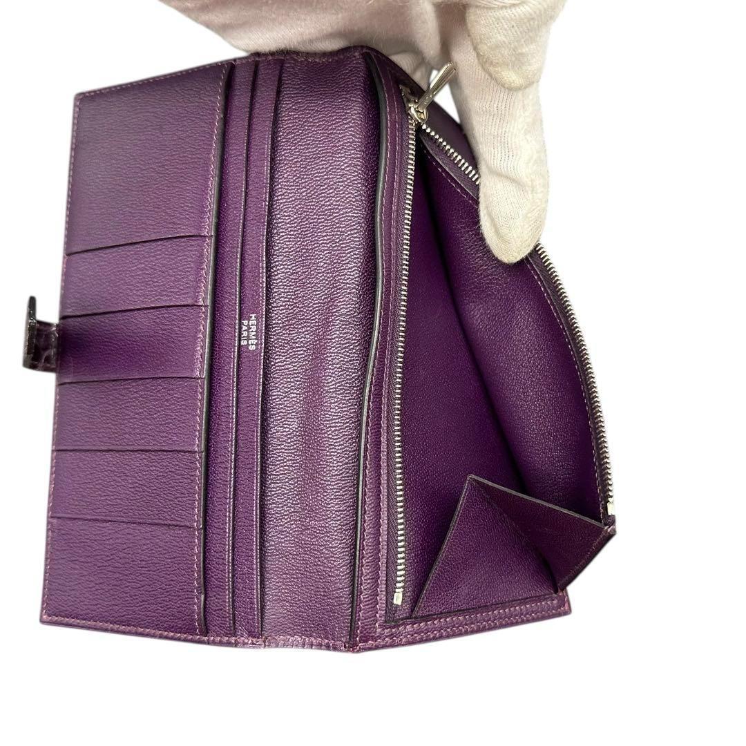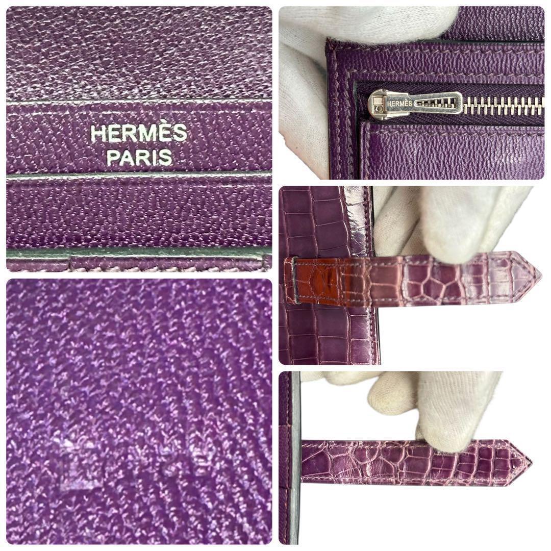 エルメス ベアン スフレ アリゲーター 長財布 HERMES クロコダイル 鑑定済み 紫 パープル