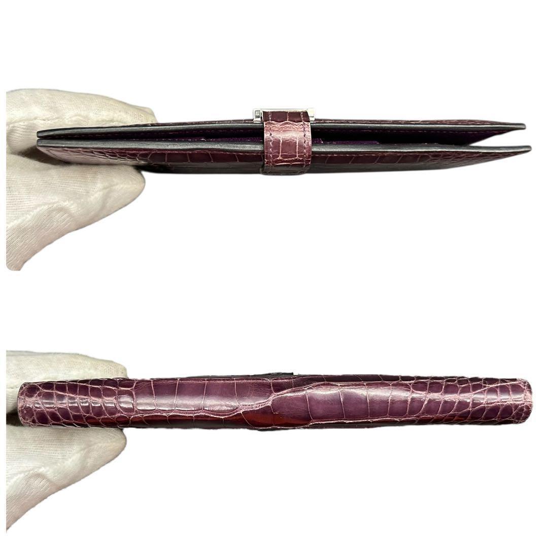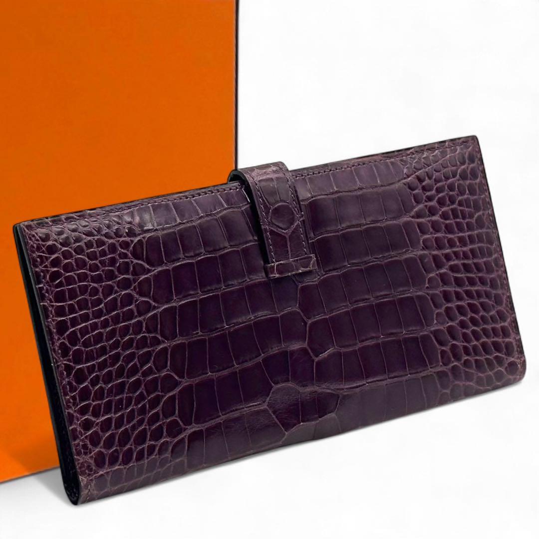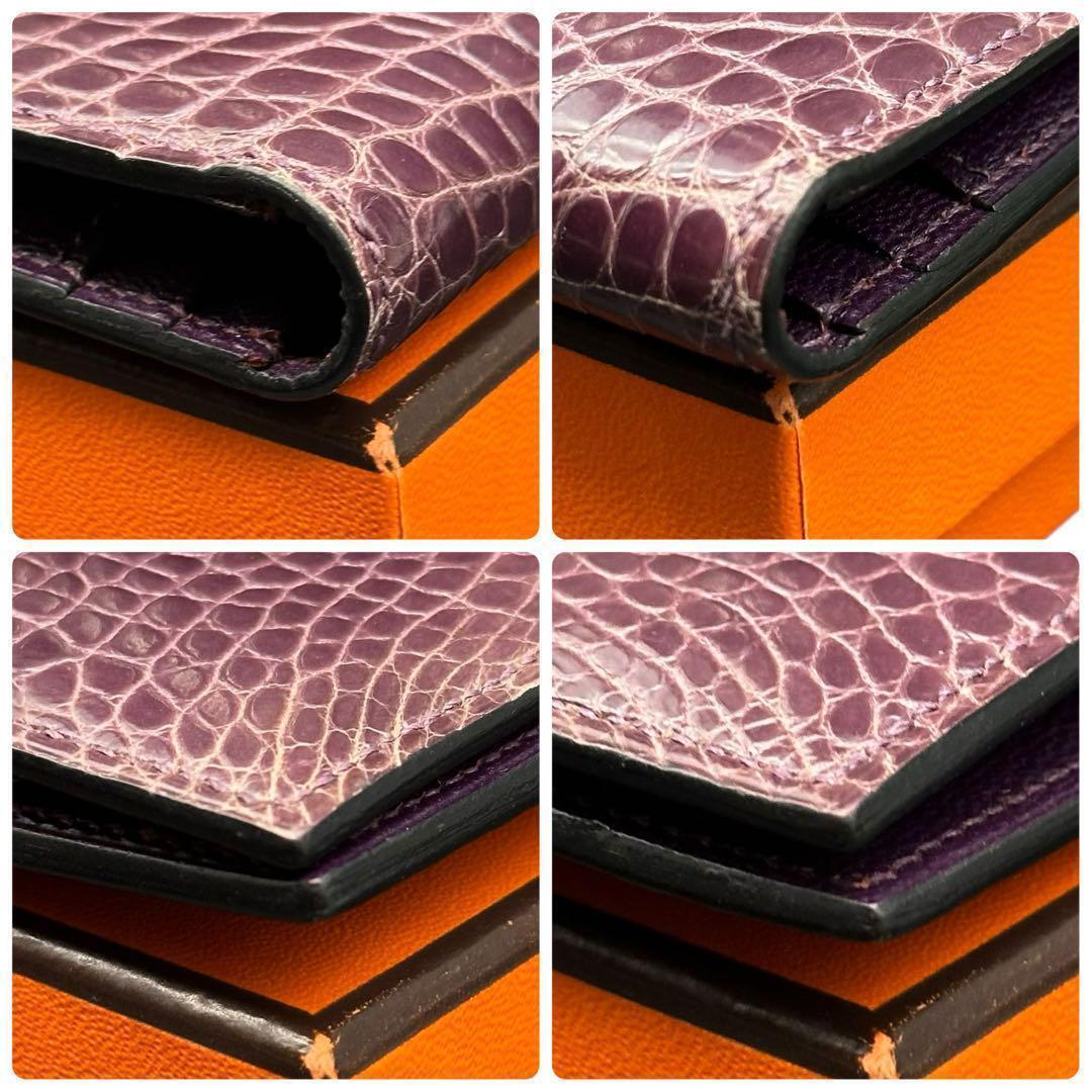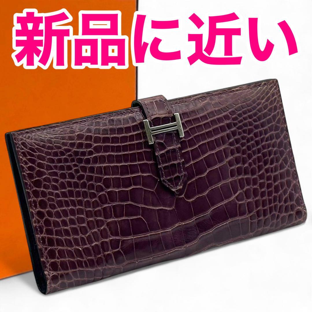 エルメス ベアン スフレ アリゲーター 長財布 HERMES クロコダイル 鑑定済み 紫 パープル
