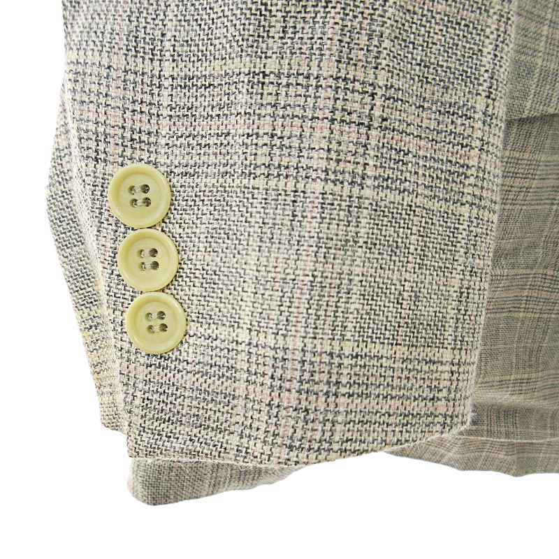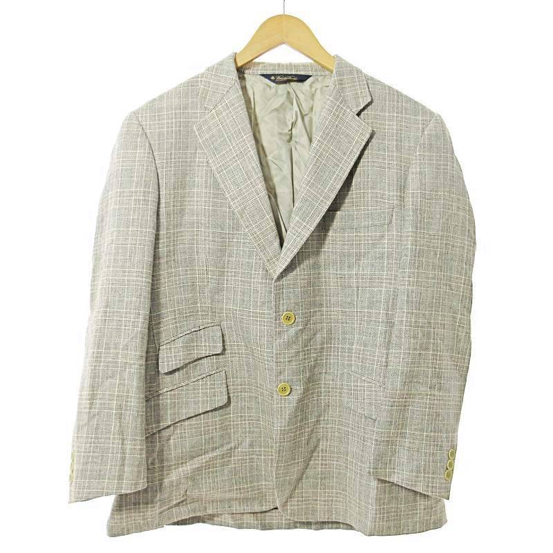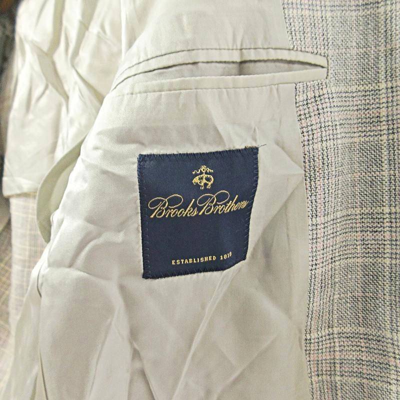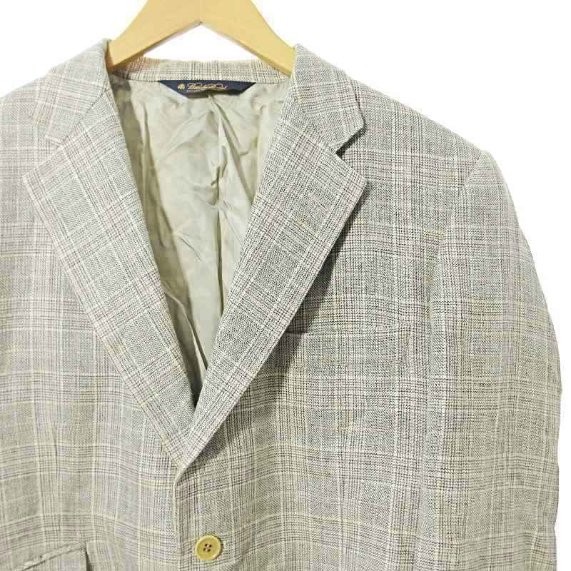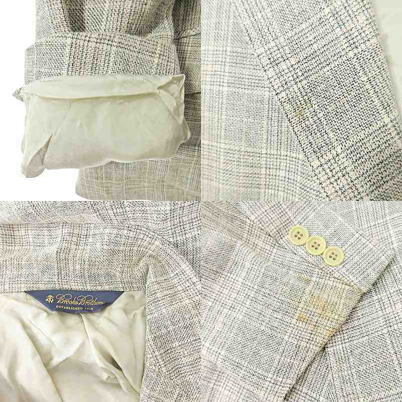 ブルックスブラザーズ BROOKS BROTHERS リネン シルク ウール テーラードジャケット ブレザー チェック柄 38 グレー 0811 IBO78 メンズ