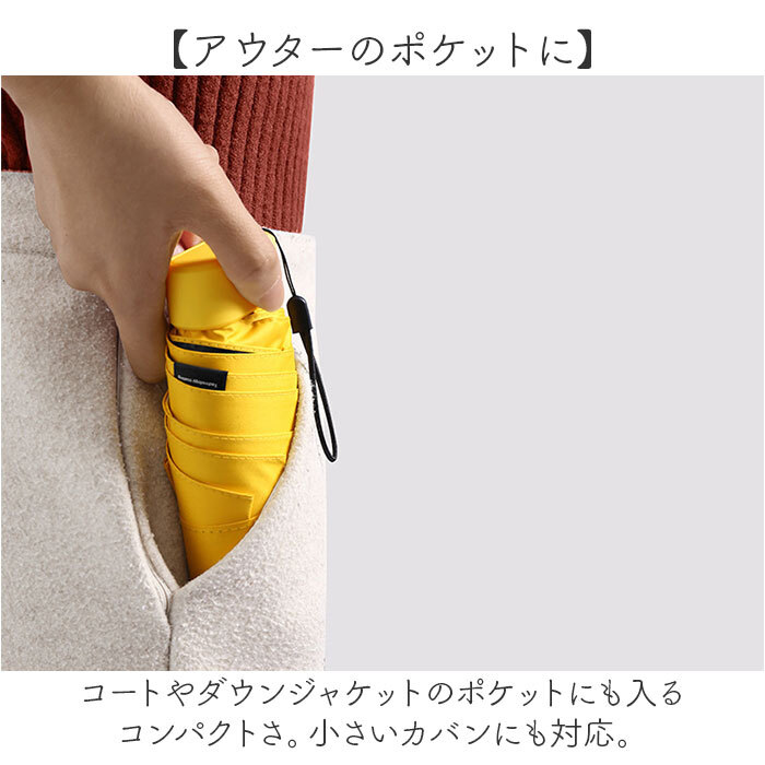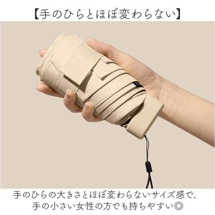 商品説明 | ・・【コンパクト&軽量】 ・コンパクトで軽量さが嬉しいケース付き折りたたみ傘。 ・【手のひらとほぼ変わらない】 ・手のひらの大きさとほぼ変わらないサイズ感で、手の小さい女性の方でも持ちやすい◎ ・【アウターのポケットに】 ・コートやダウンジャケットのポケットにも入るコンパクトさ。小さいカバンにも対応。 ・【コンパクトだけど機能的】 ・裏地には樹脂コーティングを施し、撥水と日よけを兼ね備えた作り。 ・【負担にならない軽さ】 ・常に携帯していても負担にならない軽さ♪毎日の持ち運びにおススメ♪ ・【プライベートな木陰を生み出す】 ・遮光性もあり、光や熱からもしっかり守る◎プライベートな木陰空間を。 ・【ユニセックスで使える】 ・ユニセックスでも使えるワンカラー仕様。通勤通学にも最適☆ ・【傘だけの携帯も】 ・専用のハードケース付属。首掛けや斜め掛けで使えるストラップ付で傘だけの携帯も可能。 |