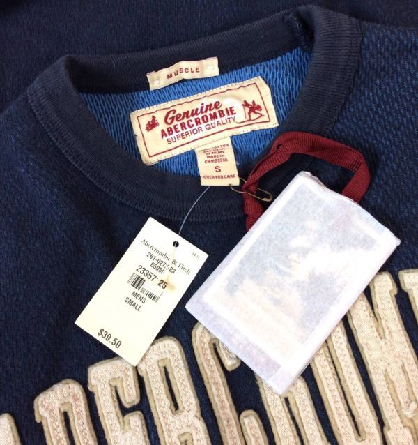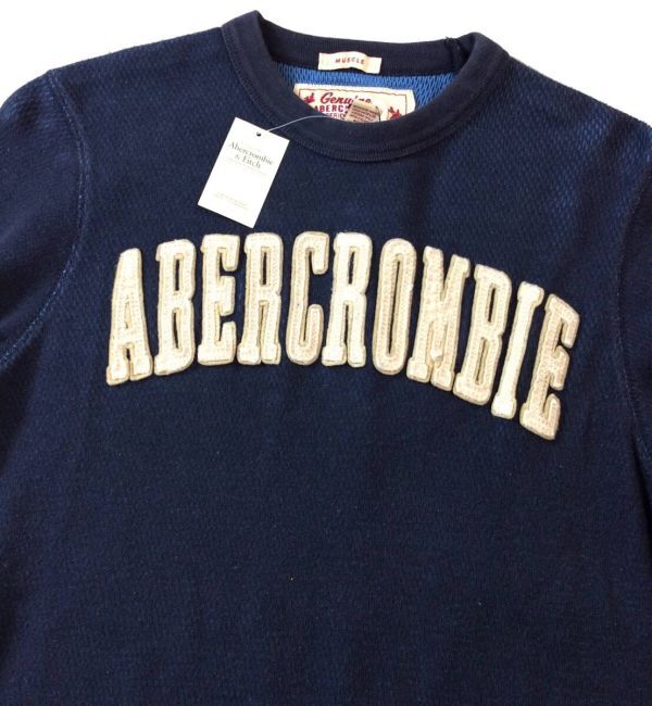 未使用 Abercrombie&Fitch アバクロンビー&フィッチ アバクロ サーマル 長袖 Tシャツ トップス カットソー インナー ネイビー メンズ S