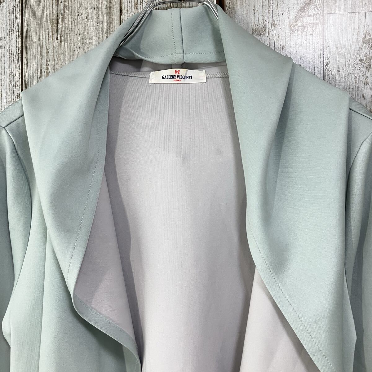 ☆GALLERY VISCONTI ギャラリービスコンティ☆カーディガン ロング 羽織り 長袖 グリーン レディース リボン ボタンレス [送料無料] f5722