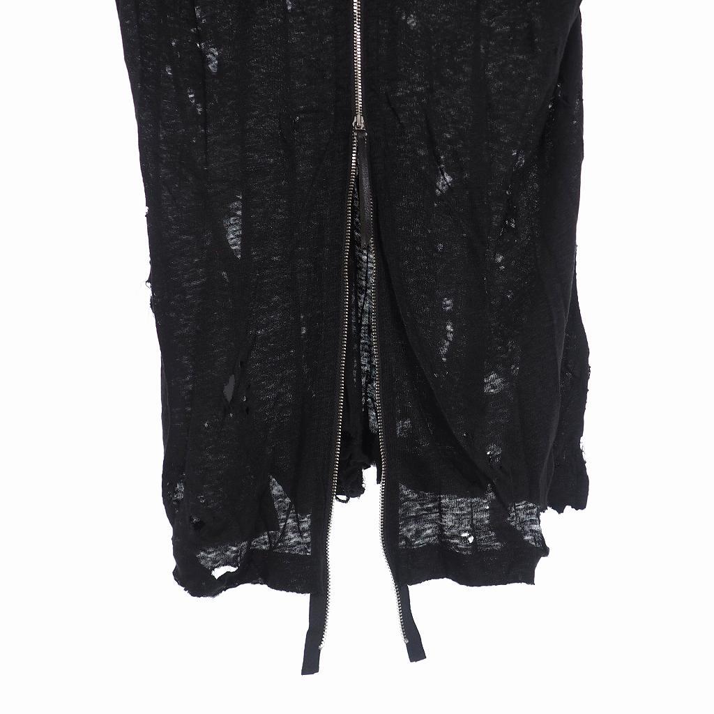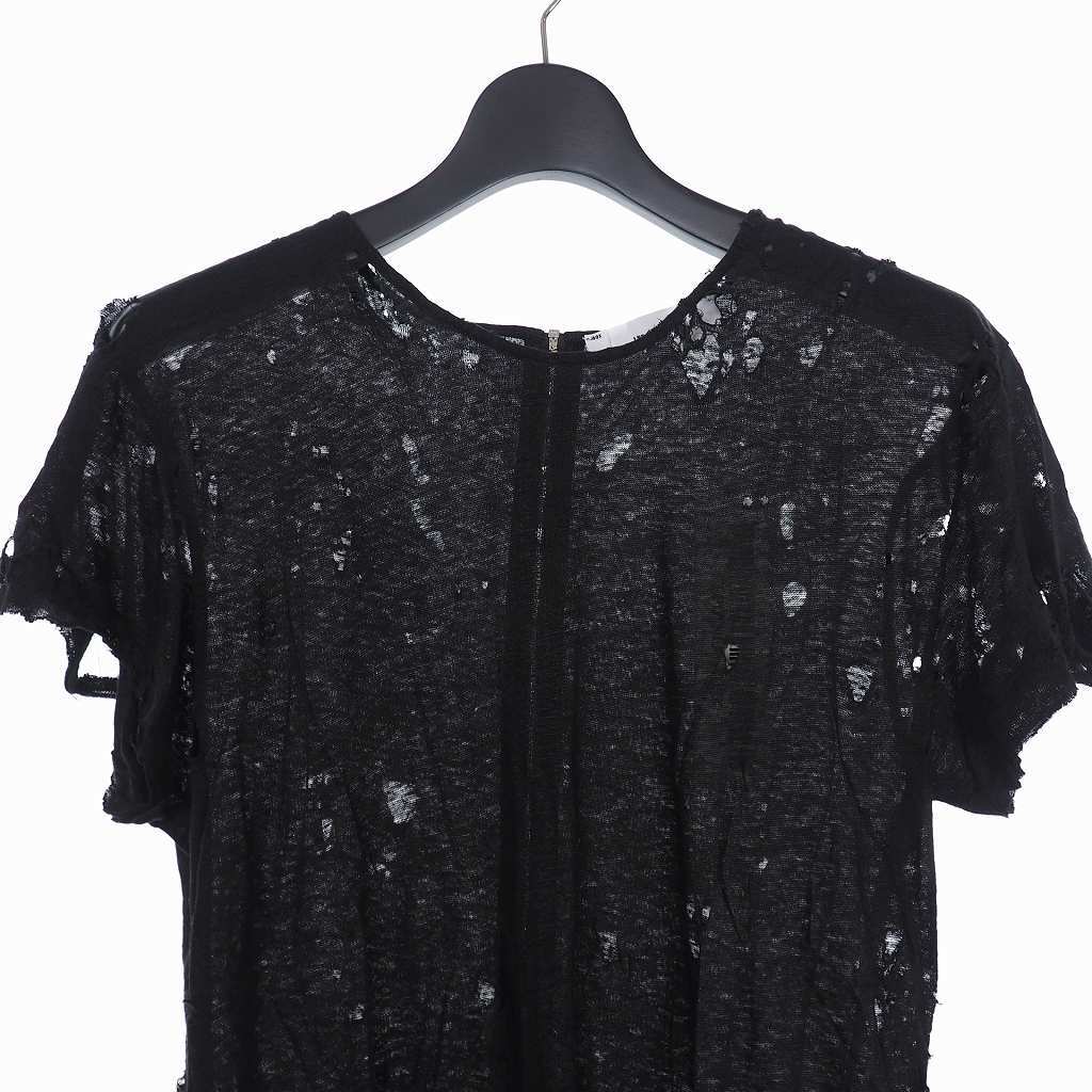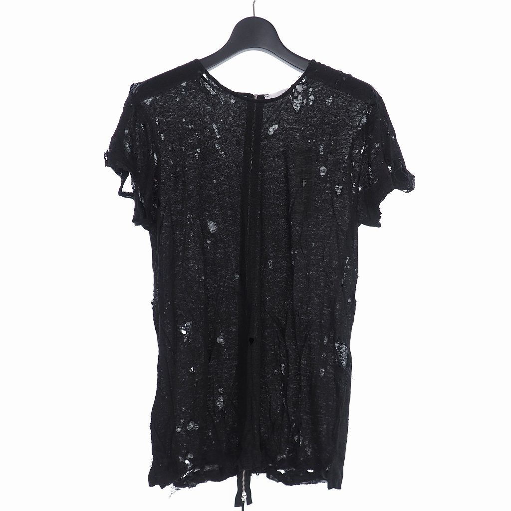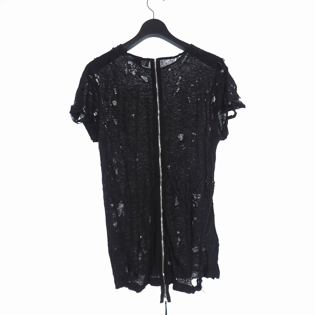 未使用品 LPD NEW YORK エルピーディー ニューヨーク Distressed Linen Zipper Spine Tee クラッシュ加工 バックジップ Tシャツ カットソー 半袖 S ブラック