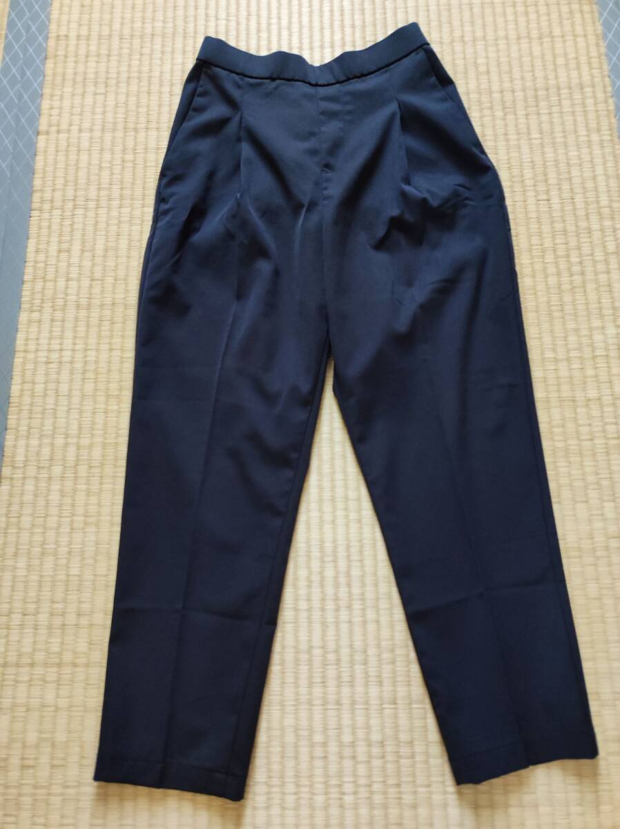 無印 再生ポリエステル テーパードパンツ S 黒 低身長