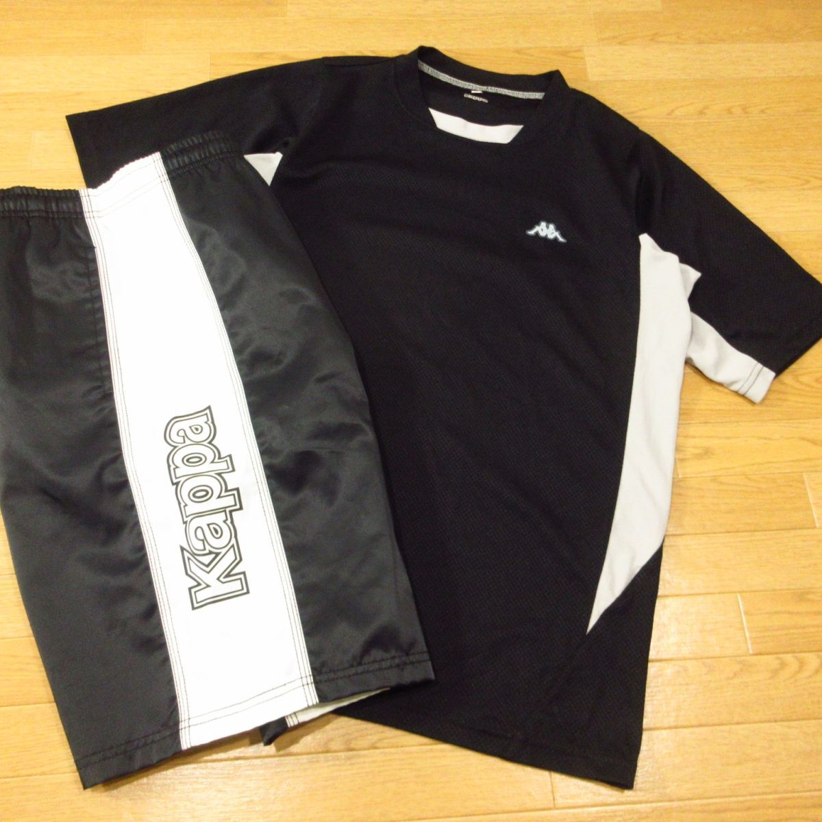 ◎美品!KAPPA カッパ Lサイズ 上下セット 半袖 Tシャツ&ナイロン ハーフパンツ ショートパンツ 速乾 メンズ 黒◆BA3237