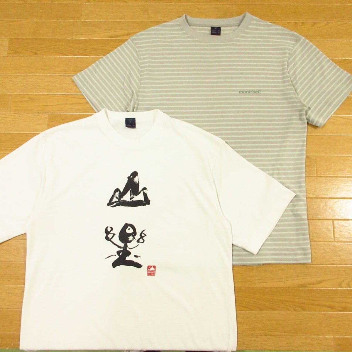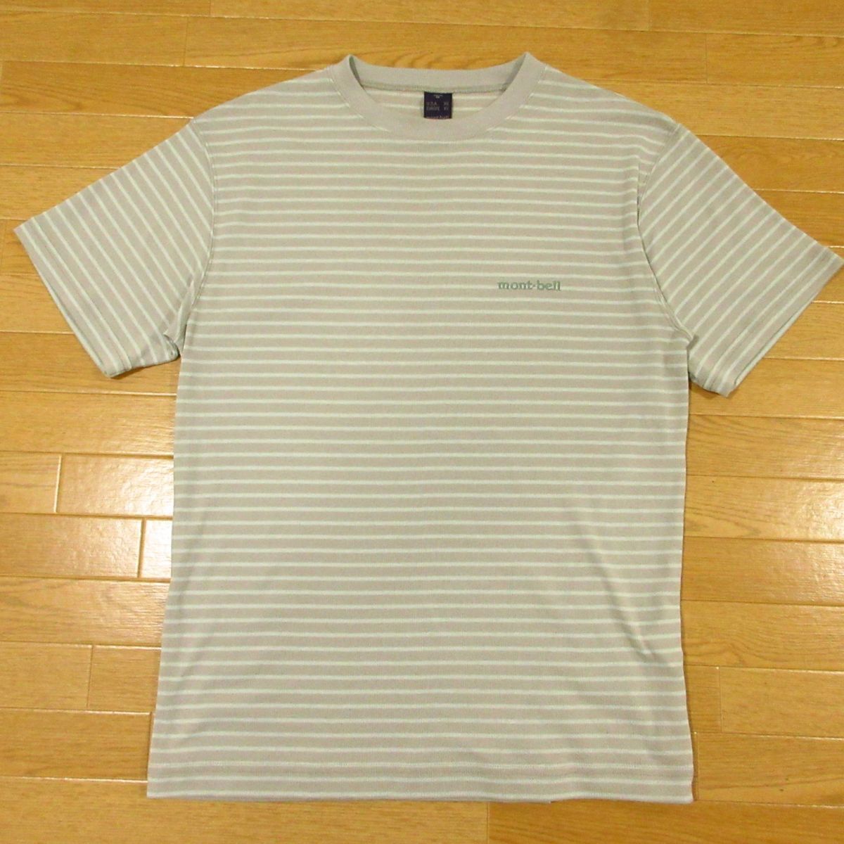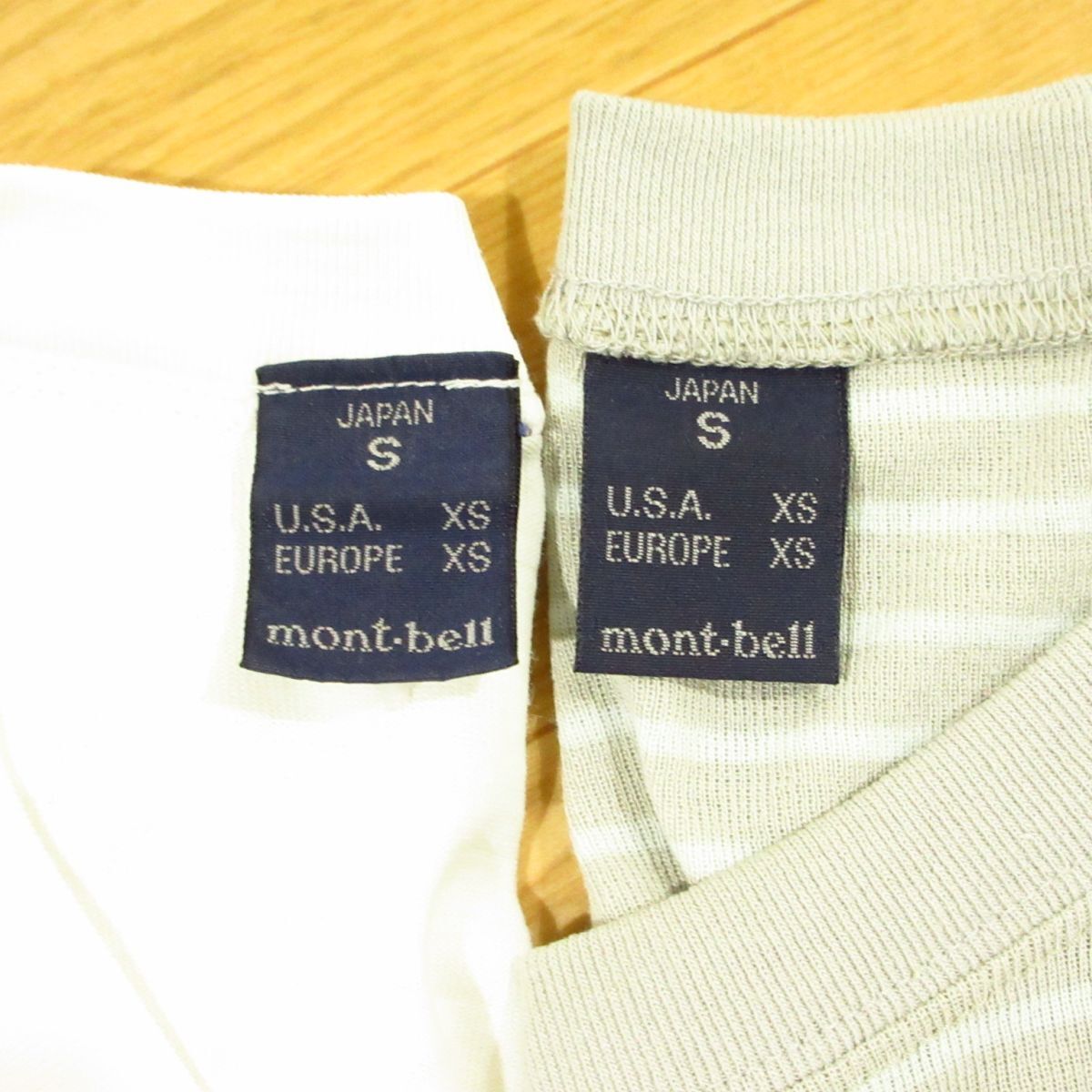◎良品!S 2枚セット mont-bell モンベル 半袖 Tシャツ ウィックロン ボーダー アウトドア メンズ 白xグレー◆CA1389