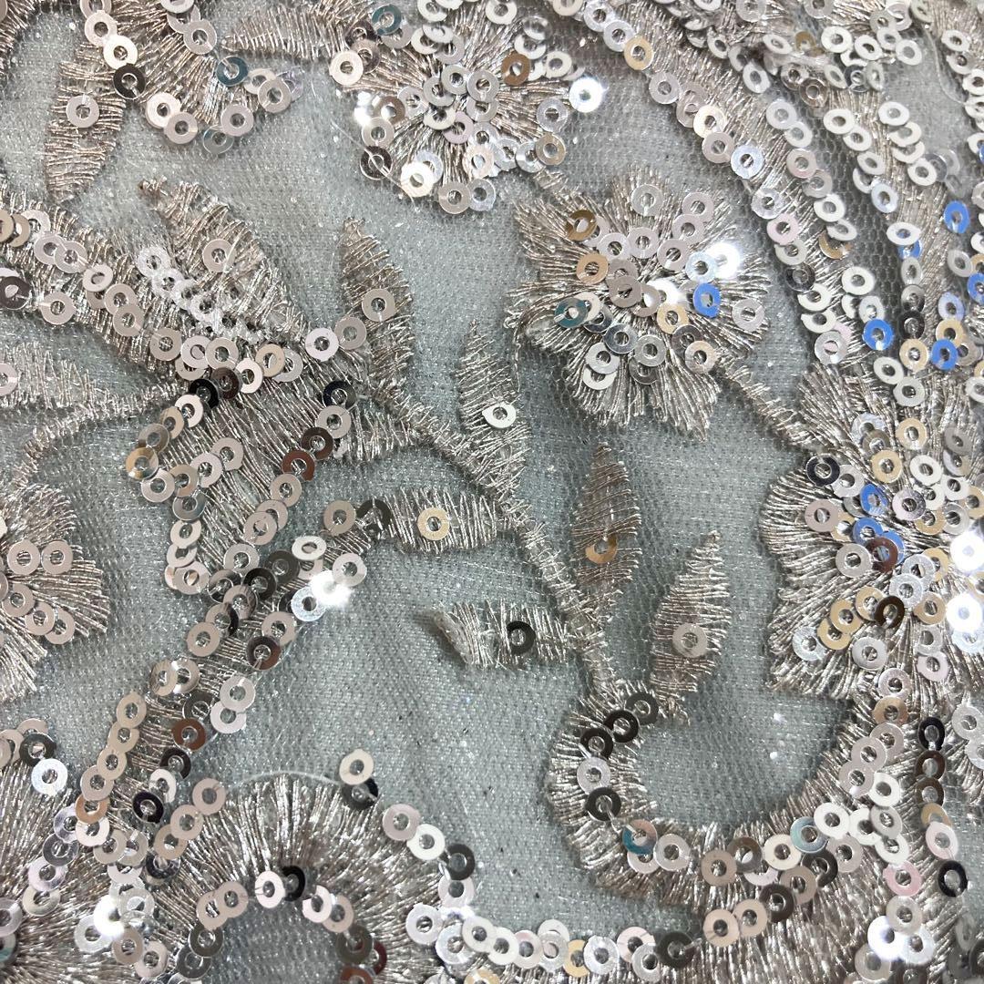 ビスチェ部分には繊細な刺繍とスパンコールが施されており、華やかさを一層引き立てます。