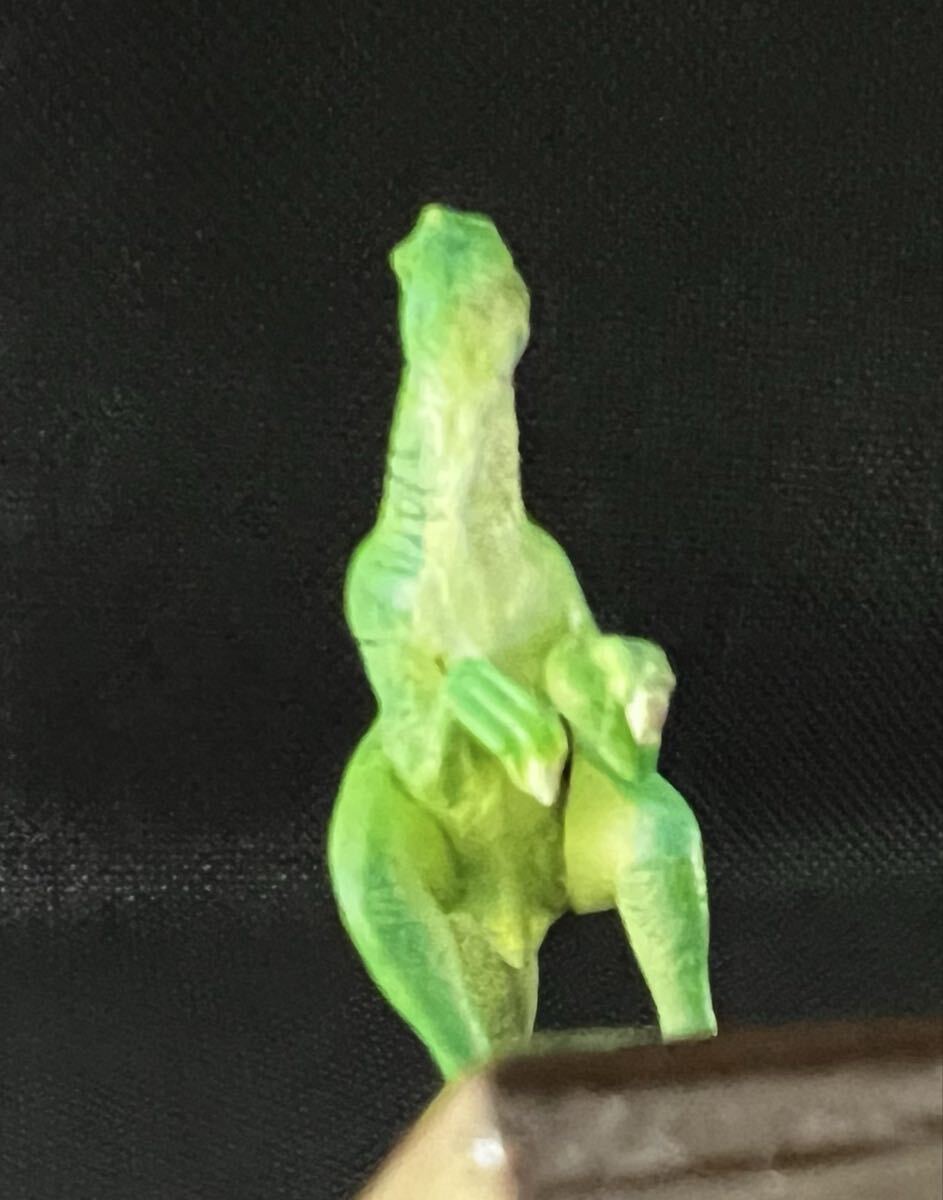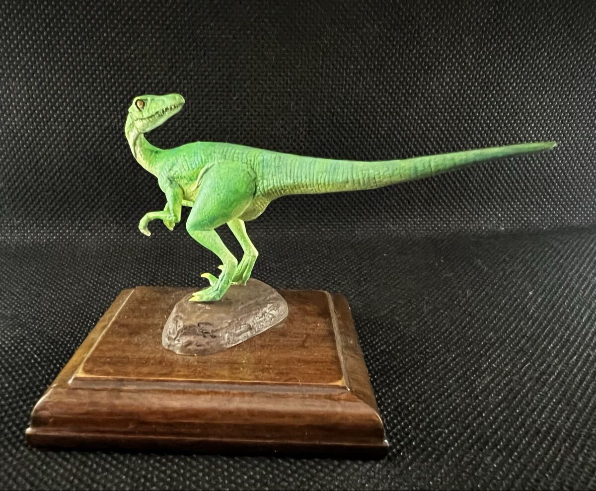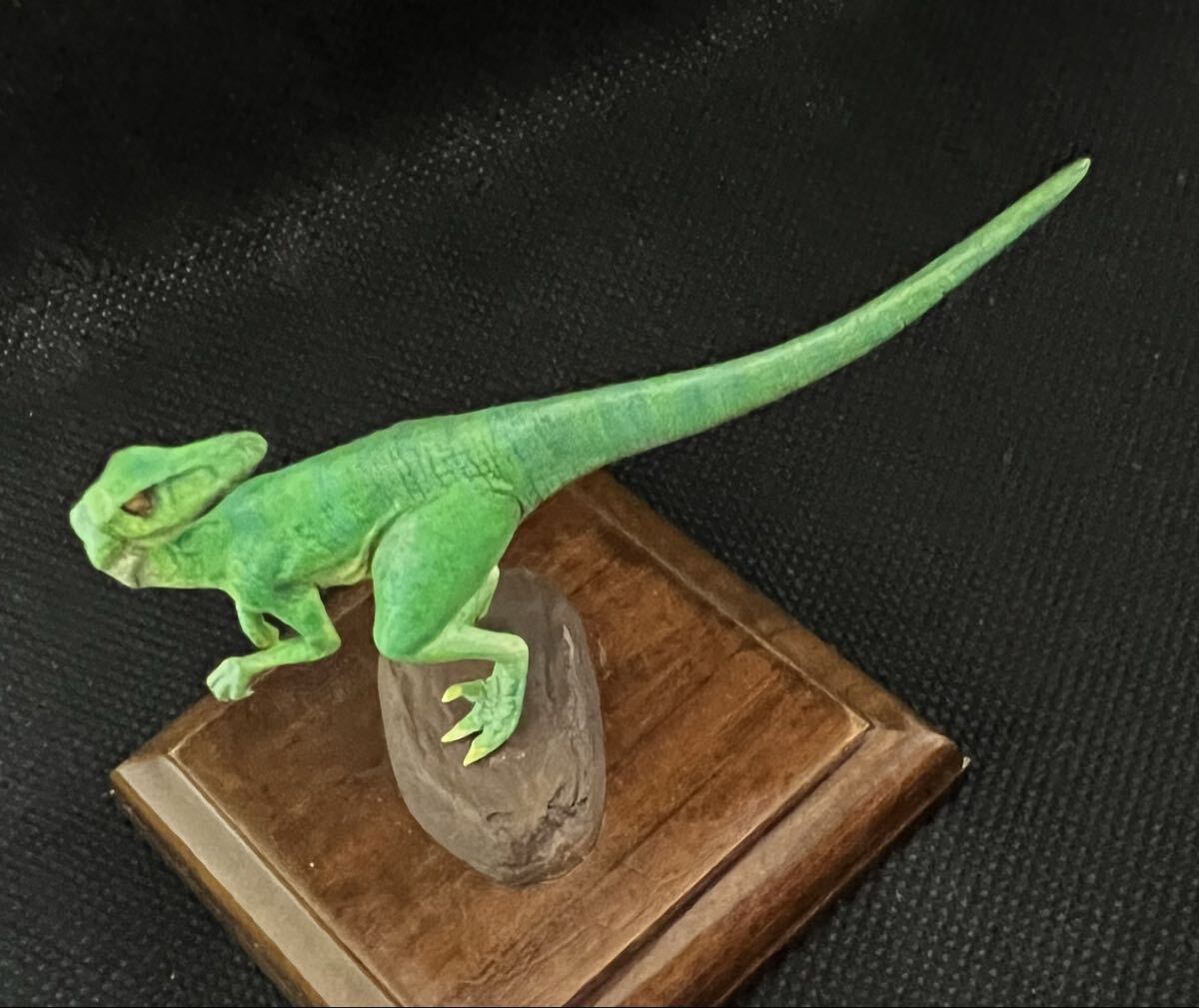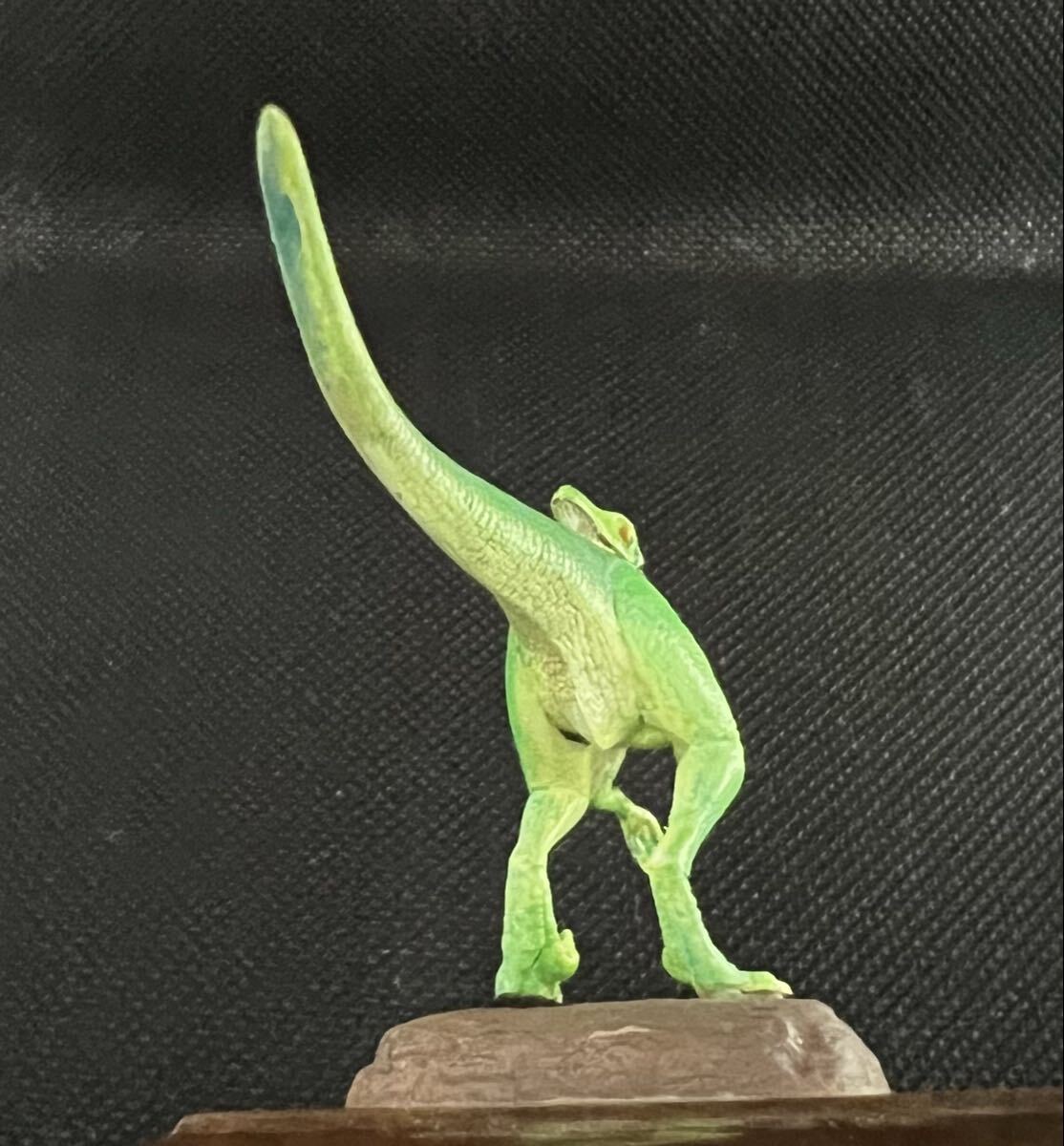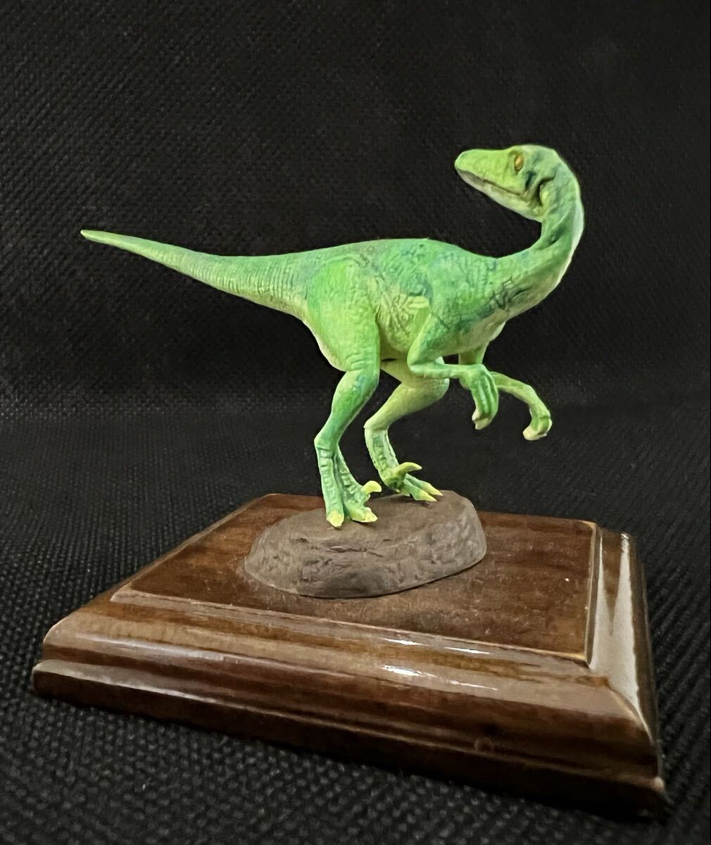 サイズですが飾り台は4辺幅6cm、ベロキラプトル飾り台を含む高さ約6cm、横8.5cmとなります。