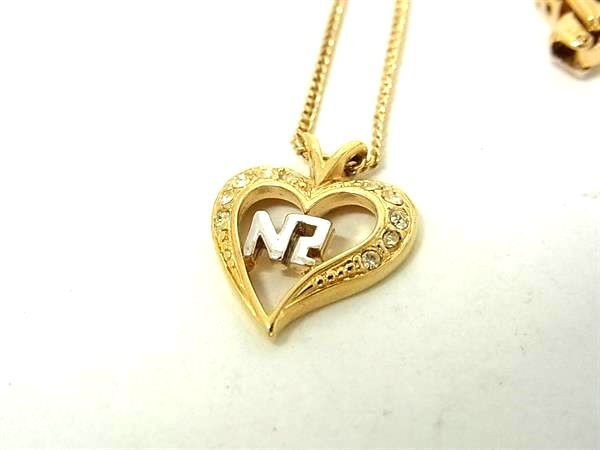 ■美品■ NINA RICCI ニナリッチ ラインストーン ハート ネックレス ペンダント アクセサリー レディース ゴールド系 DH9219