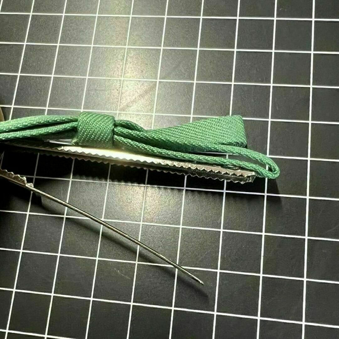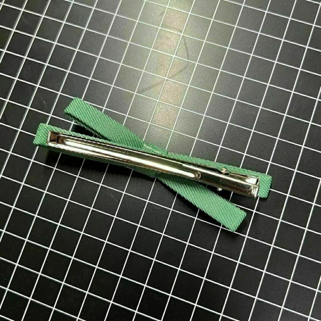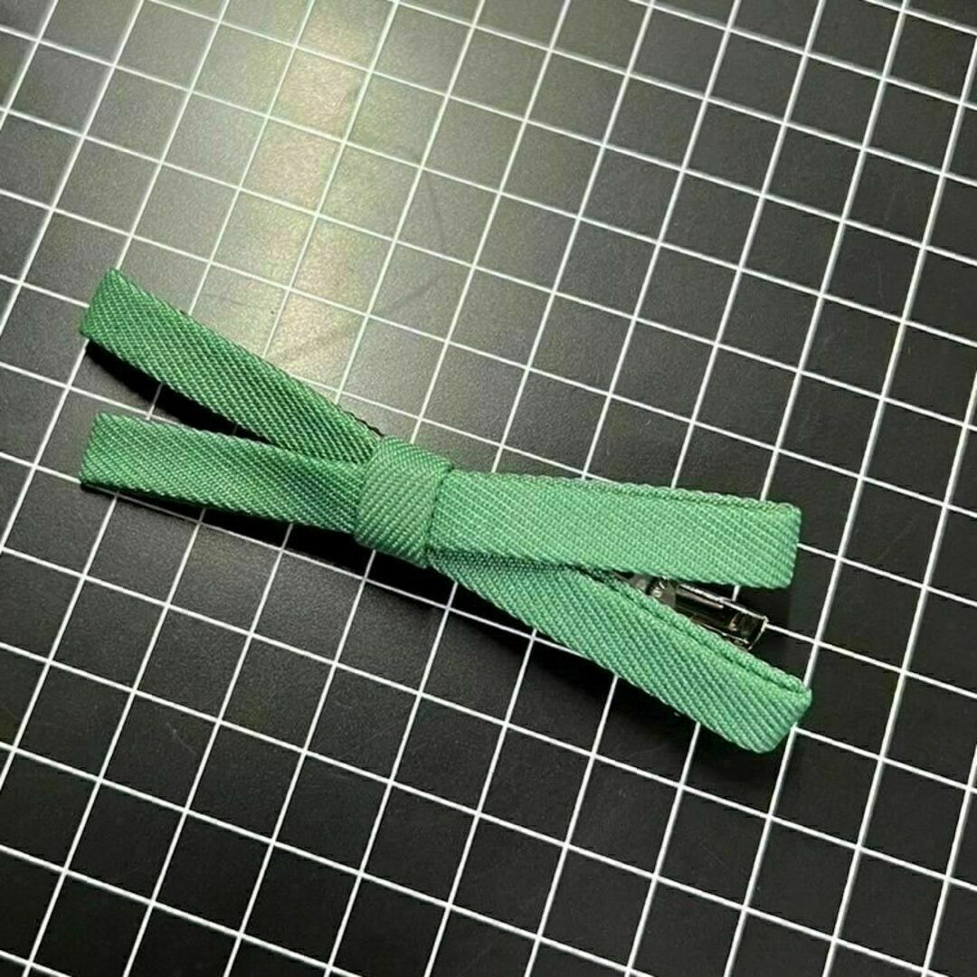 E245 匿名配送 ヘアクリップ ミニリボン グリーン ヘアピン 前髪 サイド 髪留め ヘアアクセサリー
