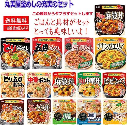 丸美屋のレンジで簡単 味付けごはん付き釜飯、丼のアソート12食セットです。ちょっとおなかが減った時に旨い釜飯が3分でOK。レトルトパックされた具材を容器に入ったご飯の上に置きチンするだけ。単身者・お夜食に最適です。