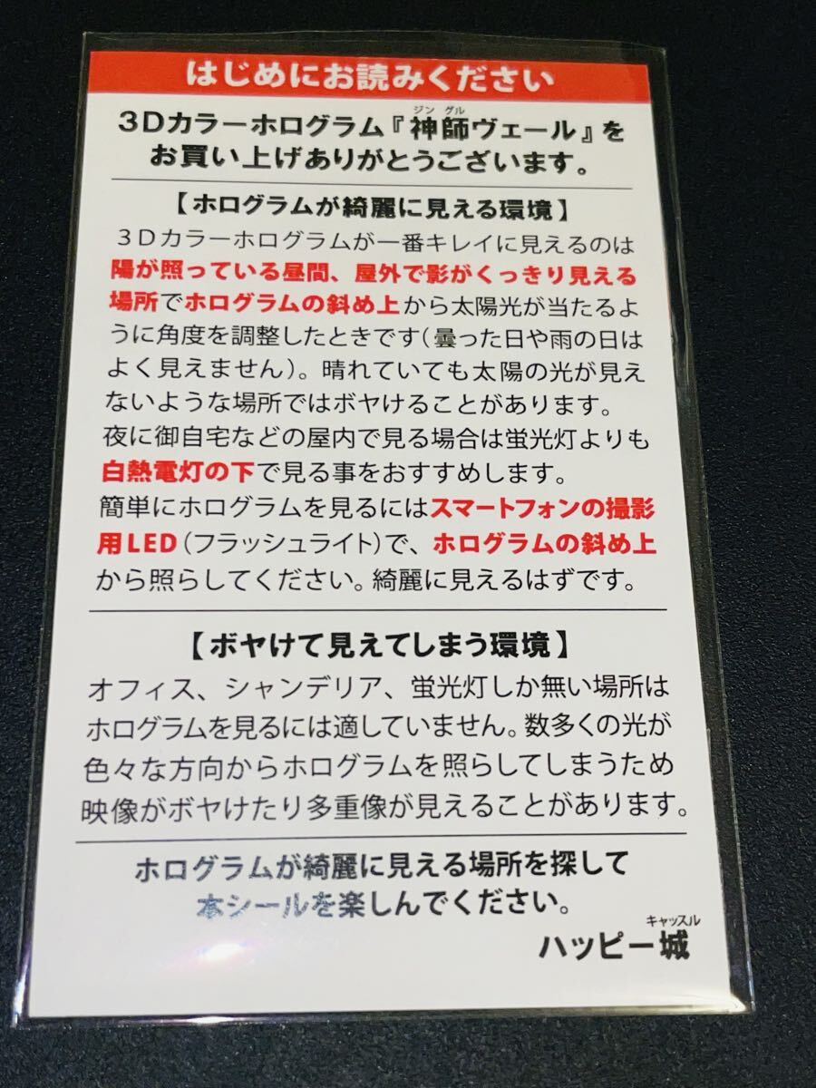 ★神師ヴェール (3Dカラーホログラム) シール サイズ:48×48mmシールが折れないように 「硬質カバー」 に入れて発送致します。 |