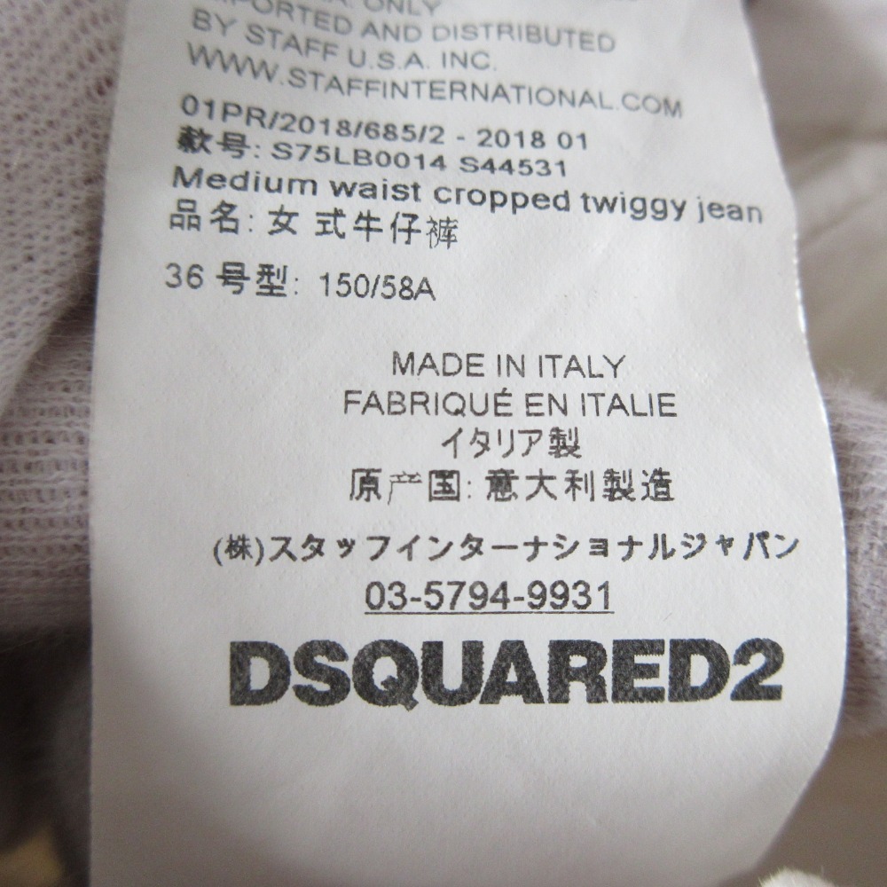 良品 DSQUARED2 ディースクエアード Medium waist cropped twiggy jean デニムパンツ 36 ホワイト