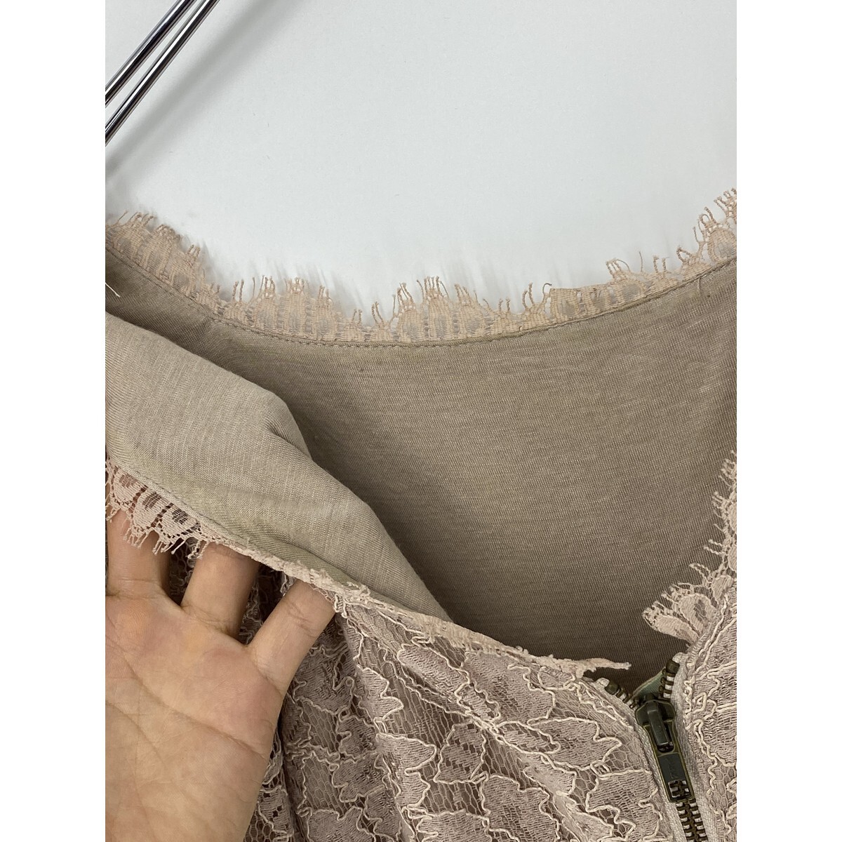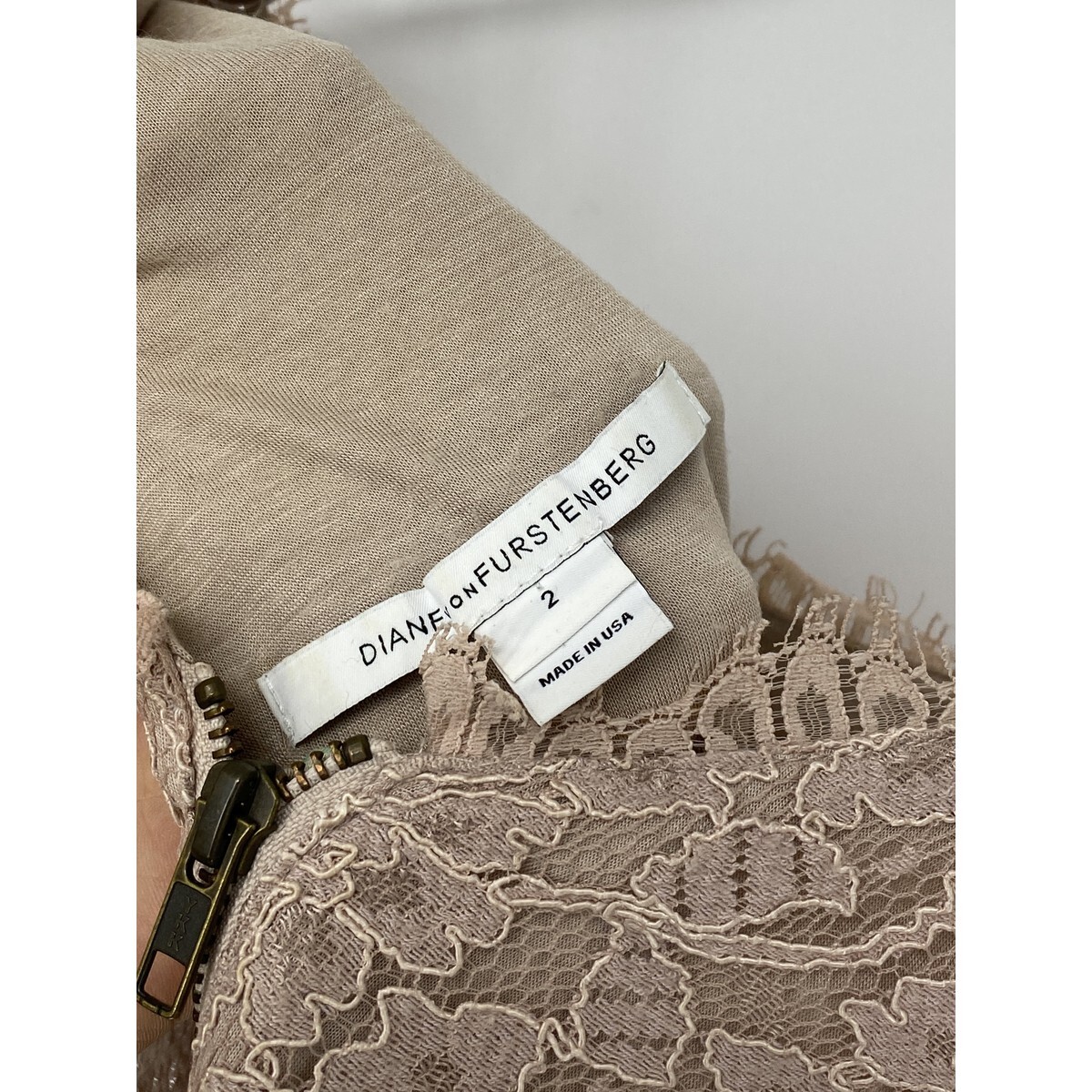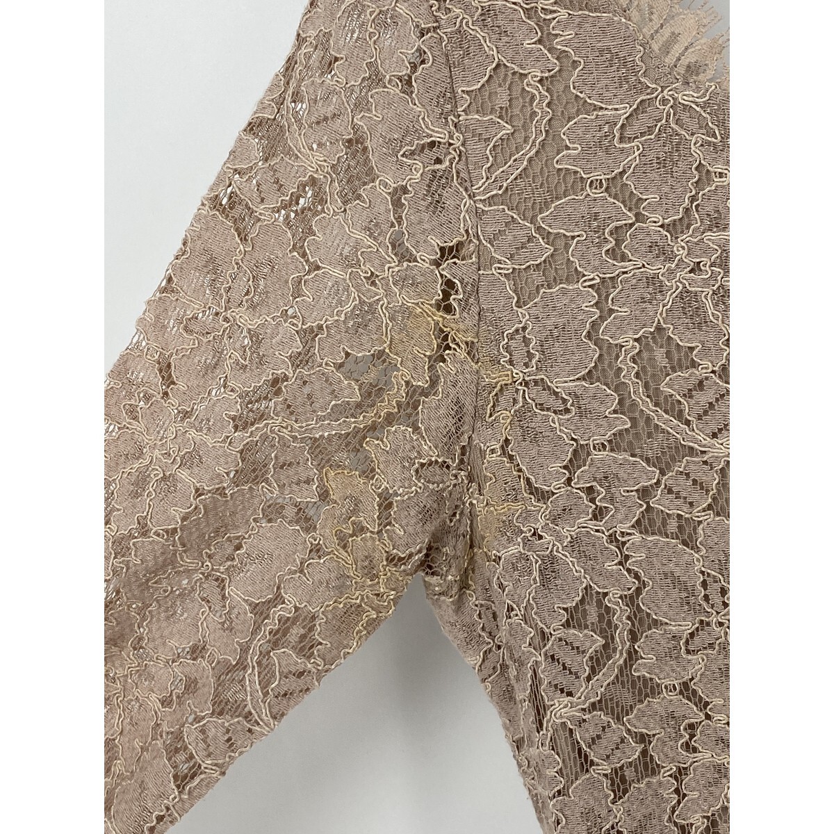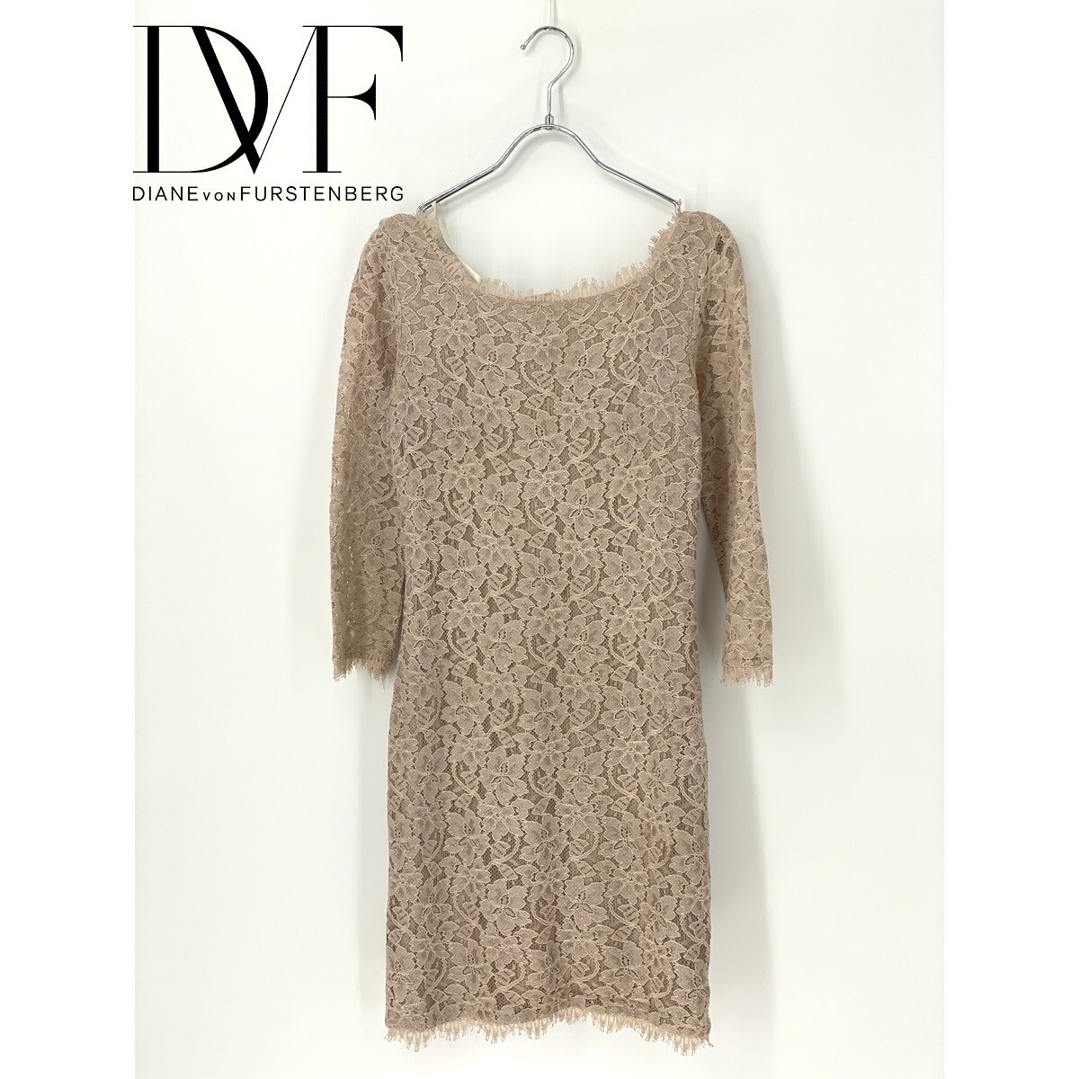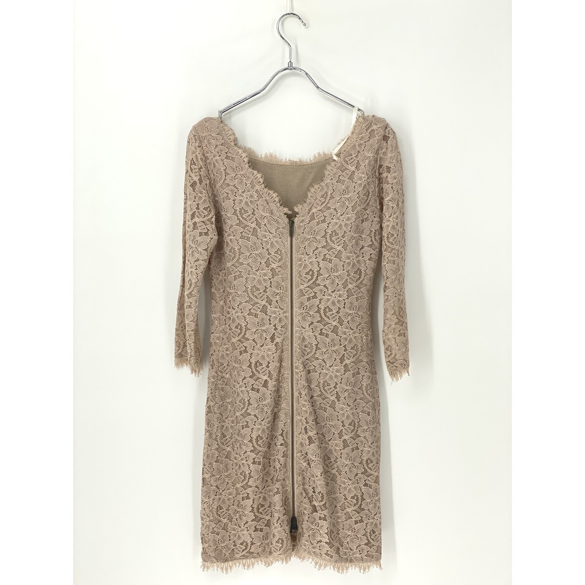 A8931/訳あり 春夏 DIANE von FURSTENBERG ダイアン レーヨン 長袖 総柄 花柄 刺繍 膝丈 ワンピース 2 M程 ピンク ベージュ レディース