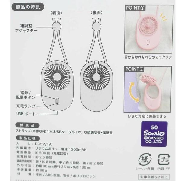 ●大人気サンリオキャラクターズこちらは夏の定番アイテム【ハンズフリーファン】首から下げて使える&風量調整3段階可能。