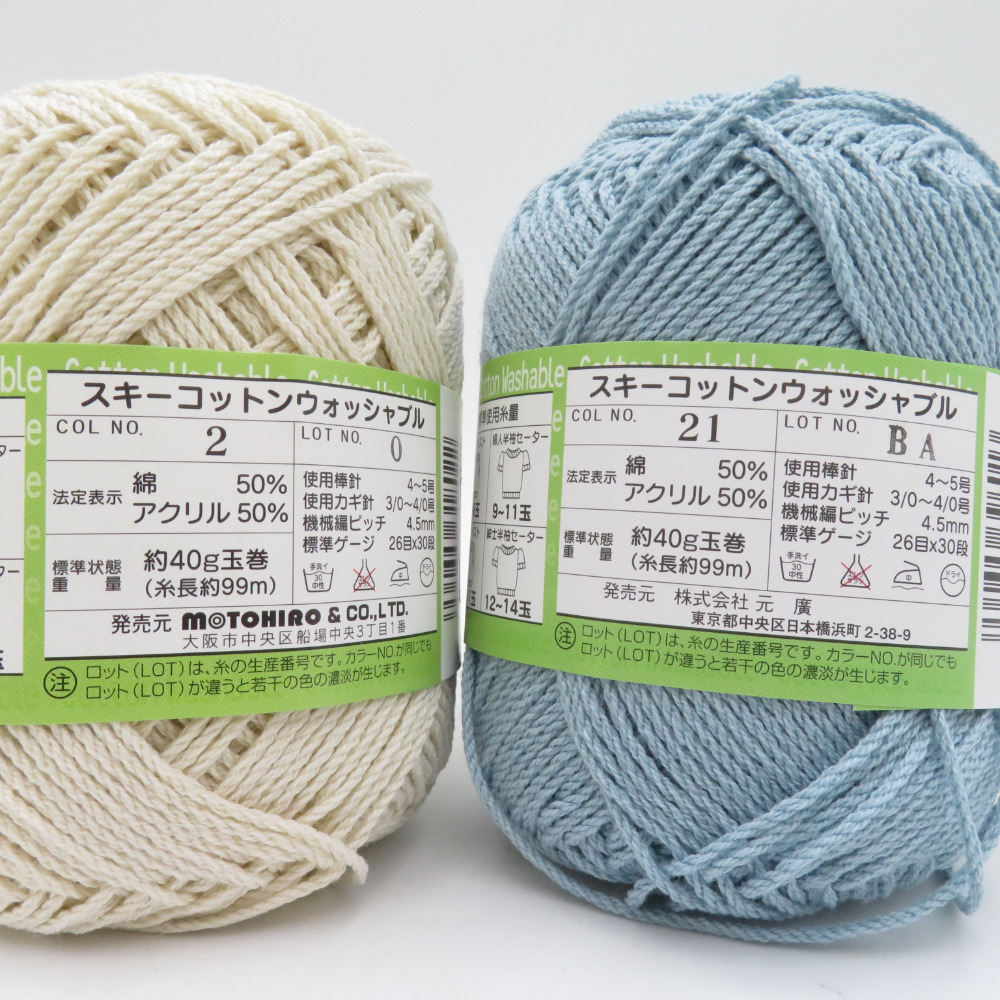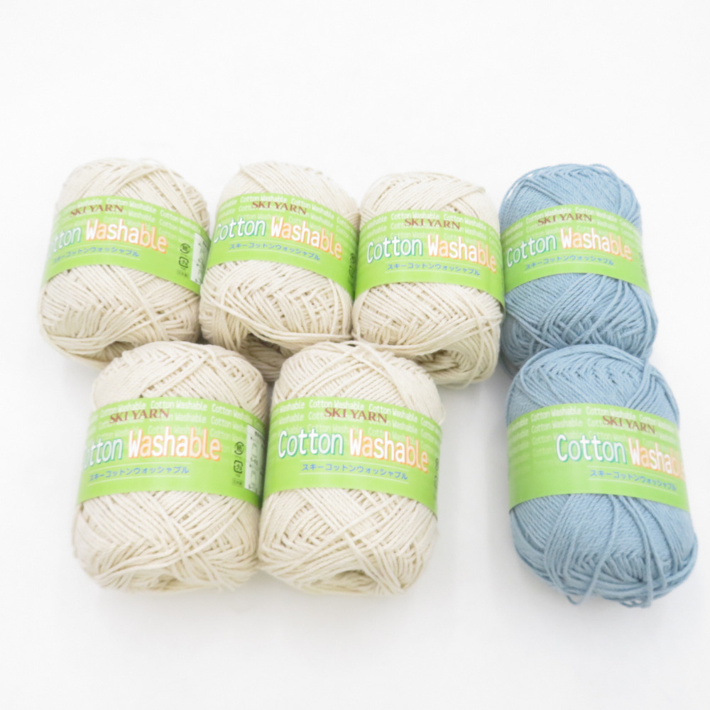 | SKI YARN 毛糸 スキーコットンウォッシャブル 7玉セット ベージュ ライトブルー 1玉40g 糸長約99m 元廣 日本製 春夏毛糸 未使用品 |
