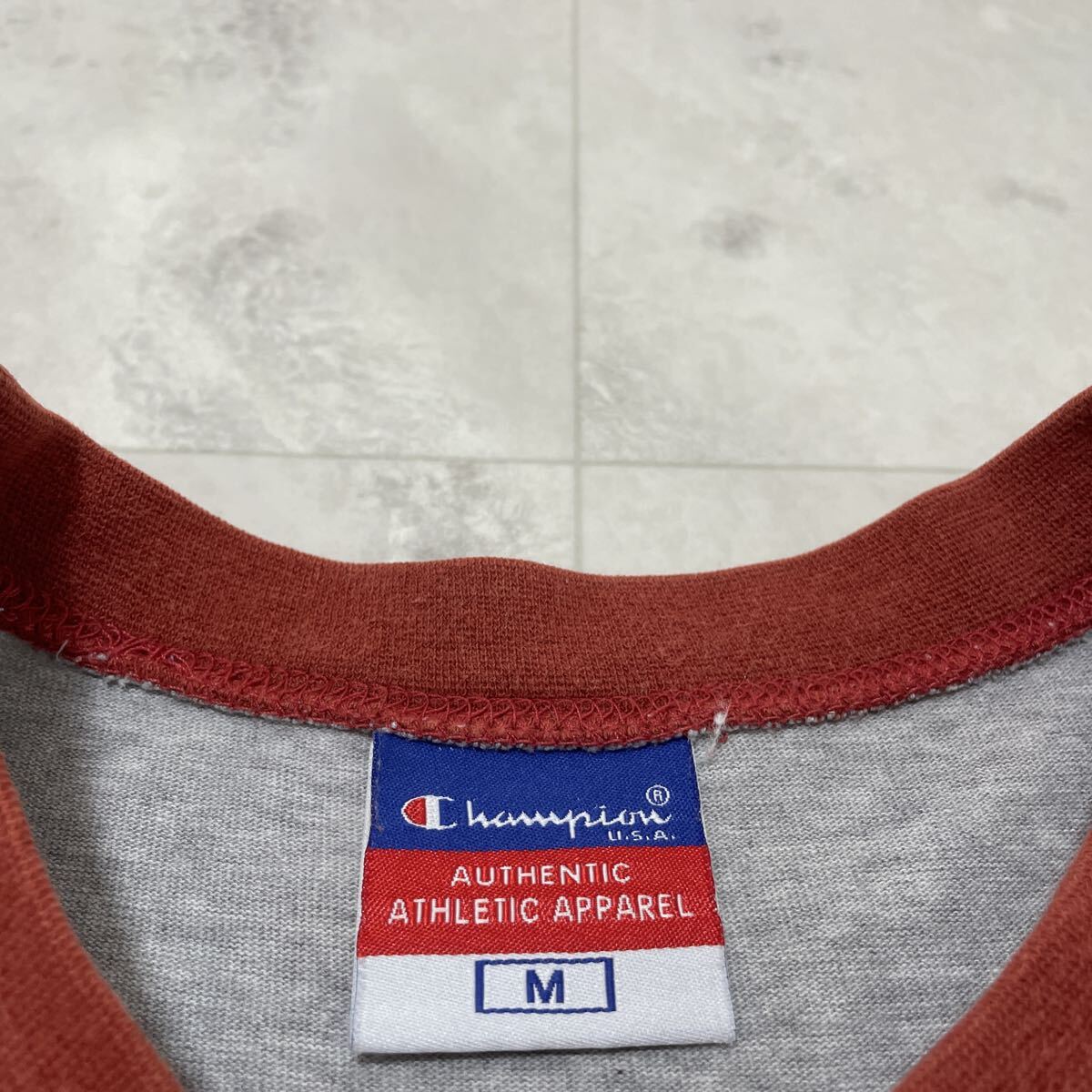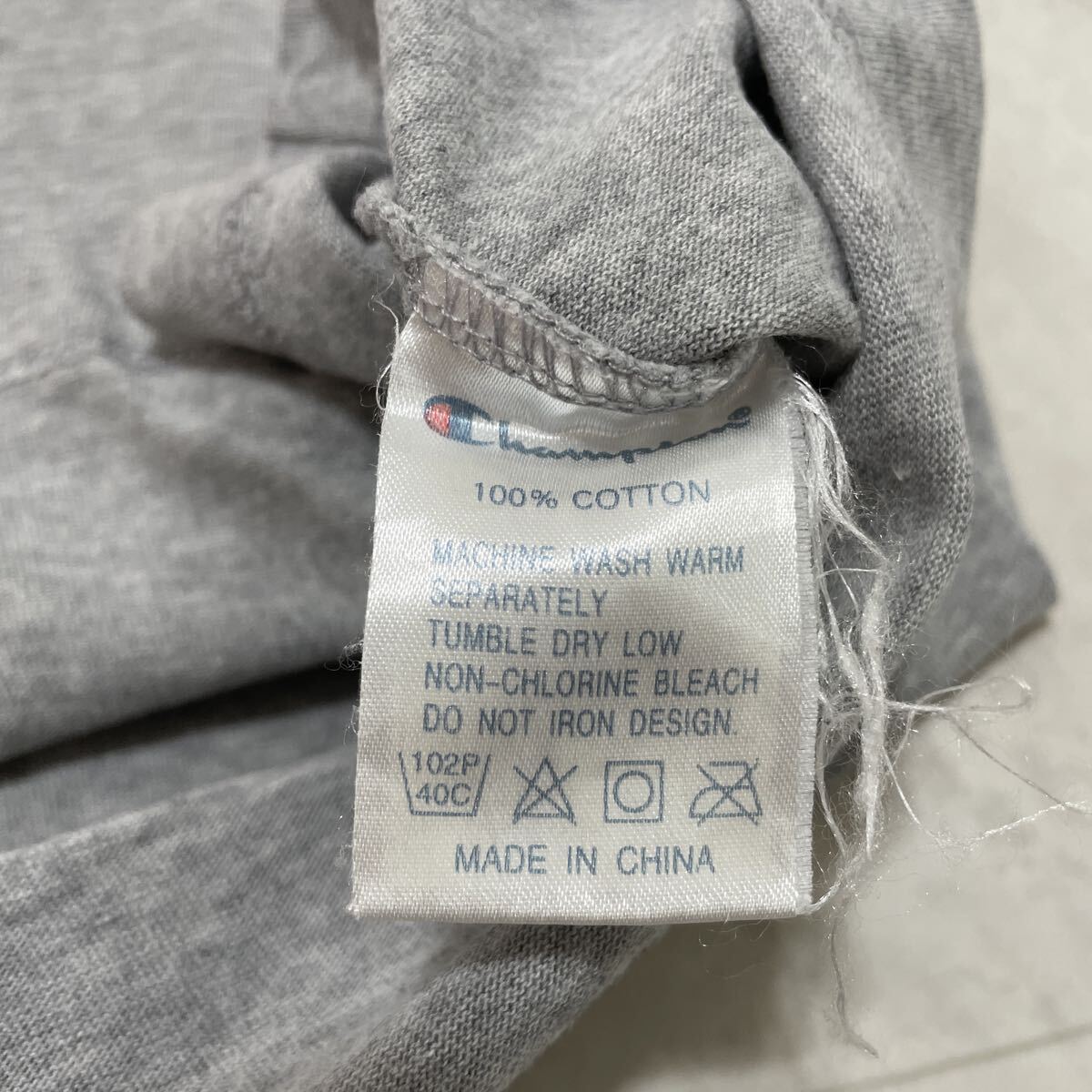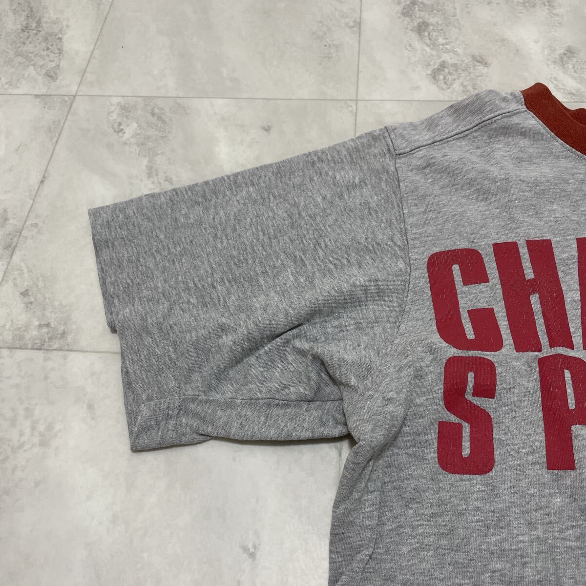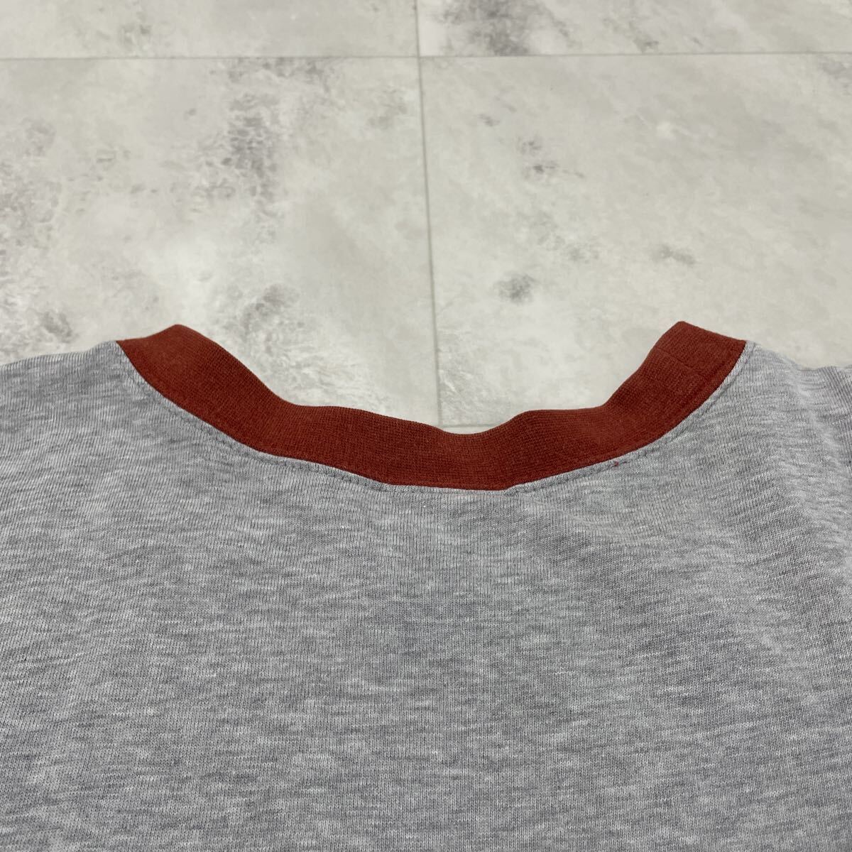 00s Champion チャンピオン Tシャツ 半袖 プリント y2k T-shirt アメカジ リブライン グレー サイズM 玉SS4151
